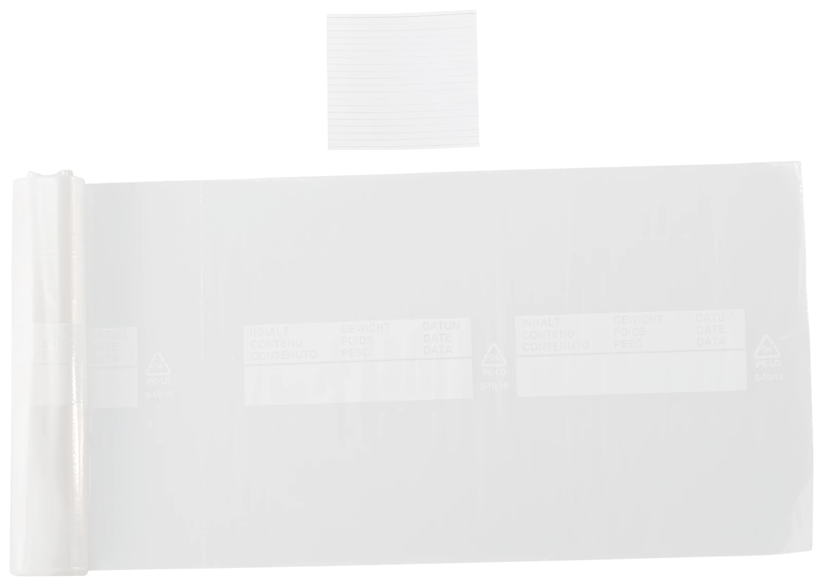 Die Tiefkühlbeutel sind mit einem Beschriftungsfeld zur Kennzeichnung der Lebensmittel vorgesehen. Zusätzlich sind Verschlussstäbchen enthalten. Materialstärke 35 my. Beutelinhalt: 2 Liter. Masse: 20 × 30 cm.