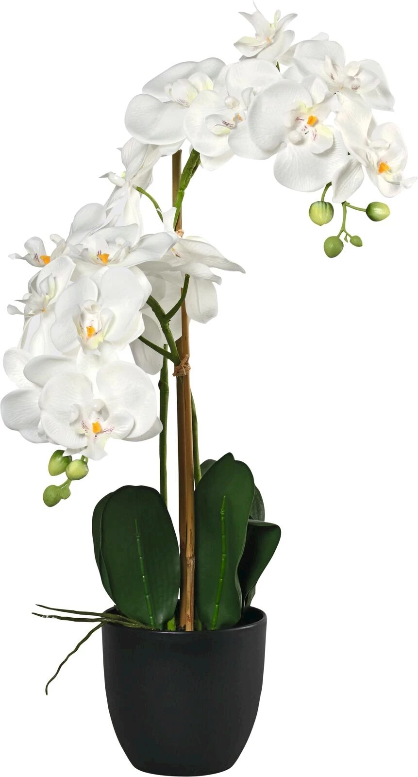 Phalaenopsis als langlebiger Blickfang. Die hochwertige und naturgetreue Pflanze hat vielseitige Einsatzmöglichkeiten. Ob auf Ihrem Schreibtisch, auf Ihrem Empfangstresen oder als Fensterdeko.