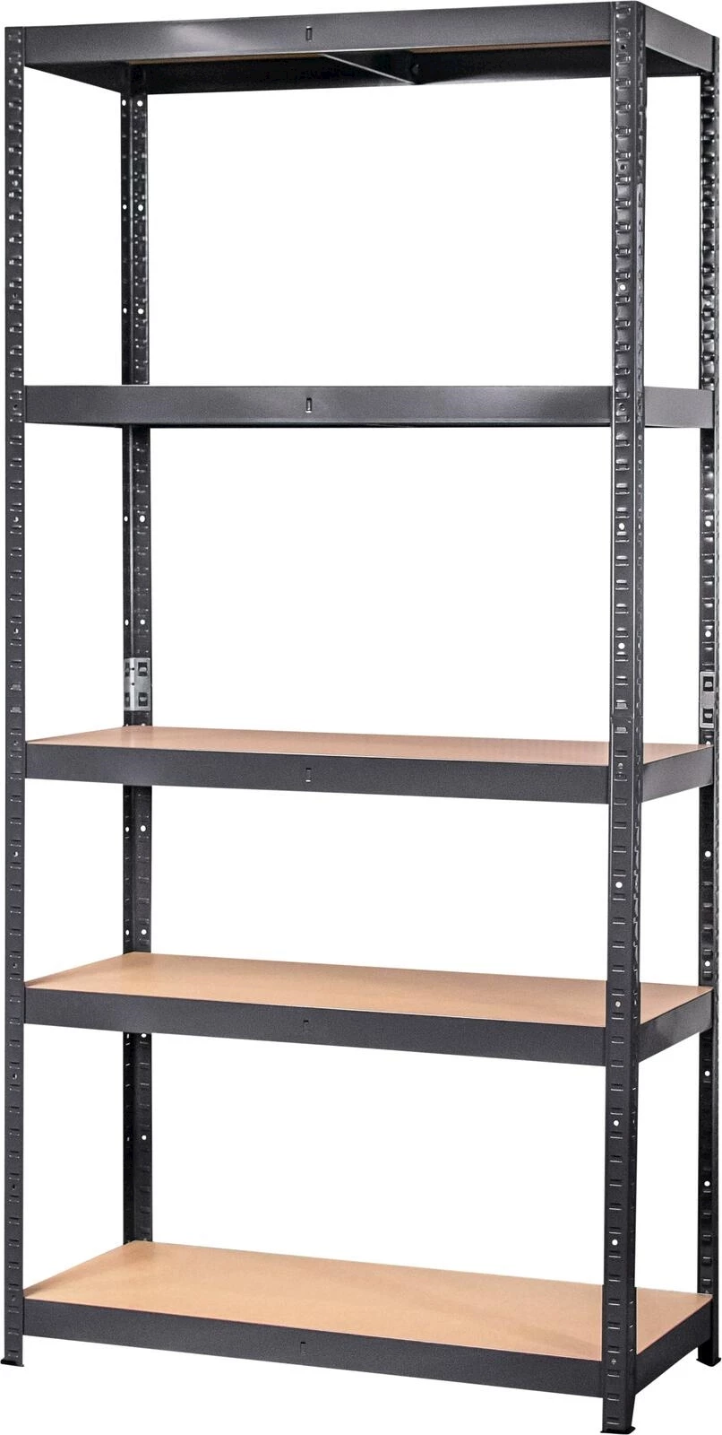 Mit 5 Tablaren. Schnellstecksystem. Max. Tragkraft pro Regalboden: 175 kg. Norm: EN14749. Es empfiehlt sich, das Regal mit der Wand zu verschrauben.