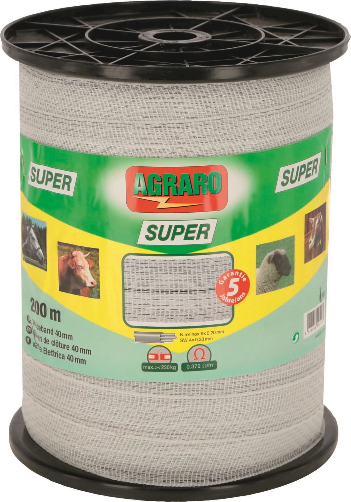 Agraro. Weidezaunband Super 40mm, 200 m. Farbe: Weiss. Exzellente Leitfähigkeit.