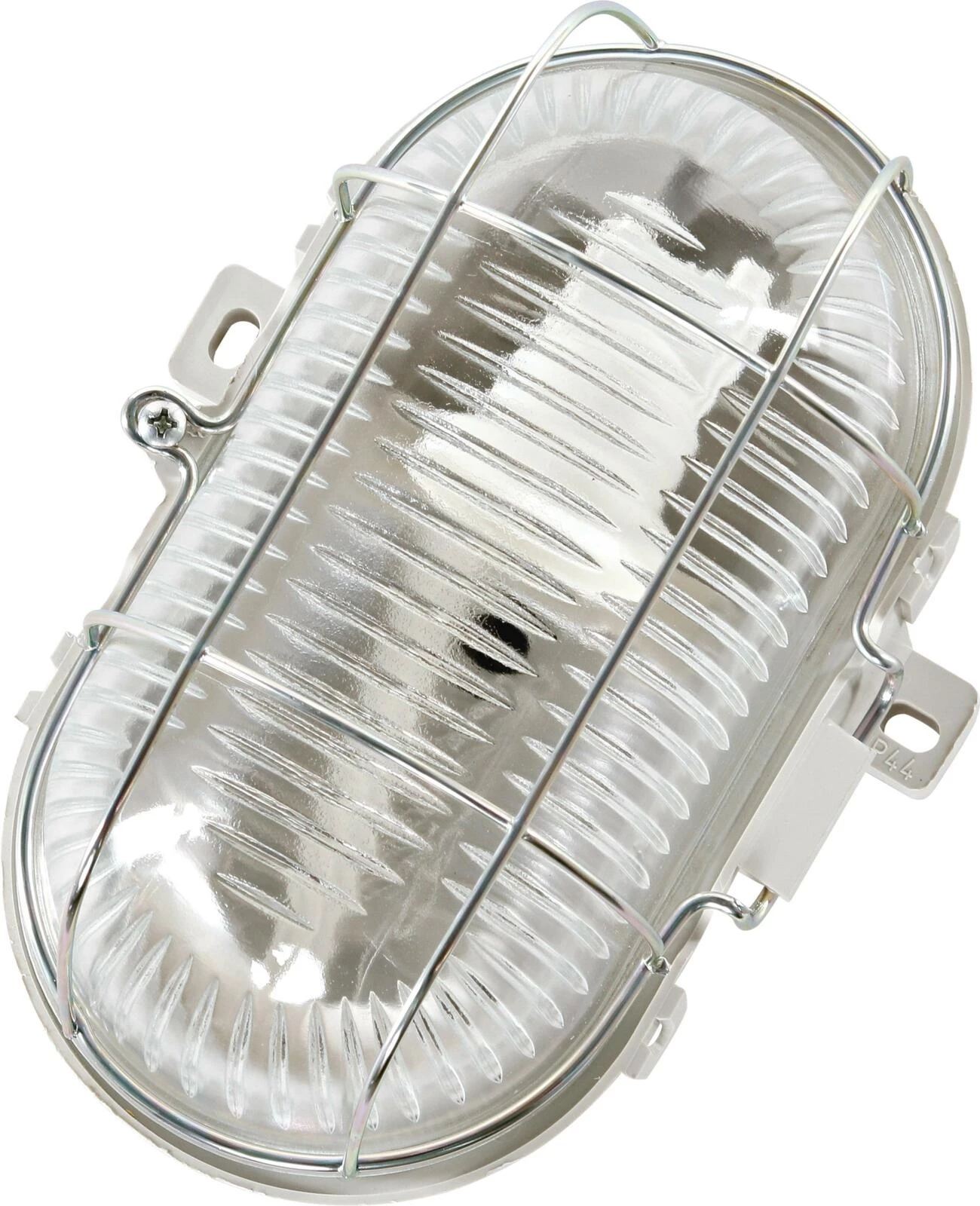 60 W Ovalleuchte in grauer Optik ist mit IP44 Schutzzertifizierung gegen Spritzwasser geschützt und für den Aussenbereich geeignet. Das Lampe hat eine gängige E27 Fassung und ist mit verzinkten Drahtbügeln versehen. Ohne Leuchtmittel.