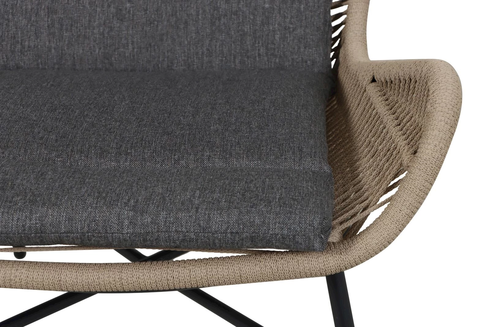 Die Kombination aus robustem Metallgestell und hochwertigem Wicker-Geflecht verleiht dem Set eine elegante, natürliche Optik und sorgt gleichzeitig für Stabilität und Langlebigkeit. Die weichen Polyesterkissen bieten zusätzlichen Komfort und laden dazu ein, sich zurückzulehnen und den Moment zu geniessen.