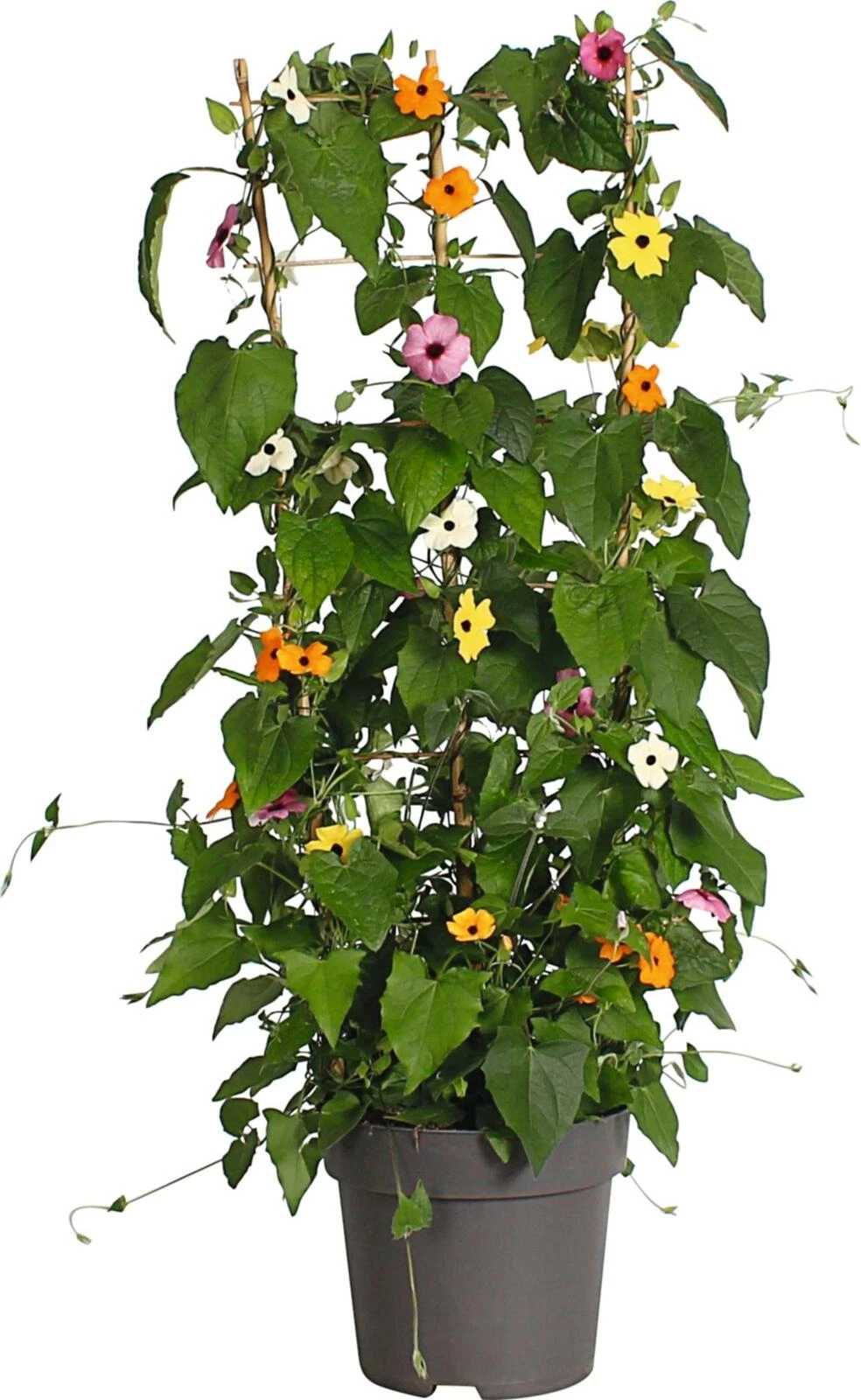 Die Schwarzäugige Susanne gehört zu den beliebtesten einjährigen rankenden Pflanzen! Vorzugsweise werden sie zur Begrünung von Gartenzäunen, Sichtschutzwänden und Balkonen, zum Einsatz kommen auch als Ampelpflanze eignen sie sich hervorragend.