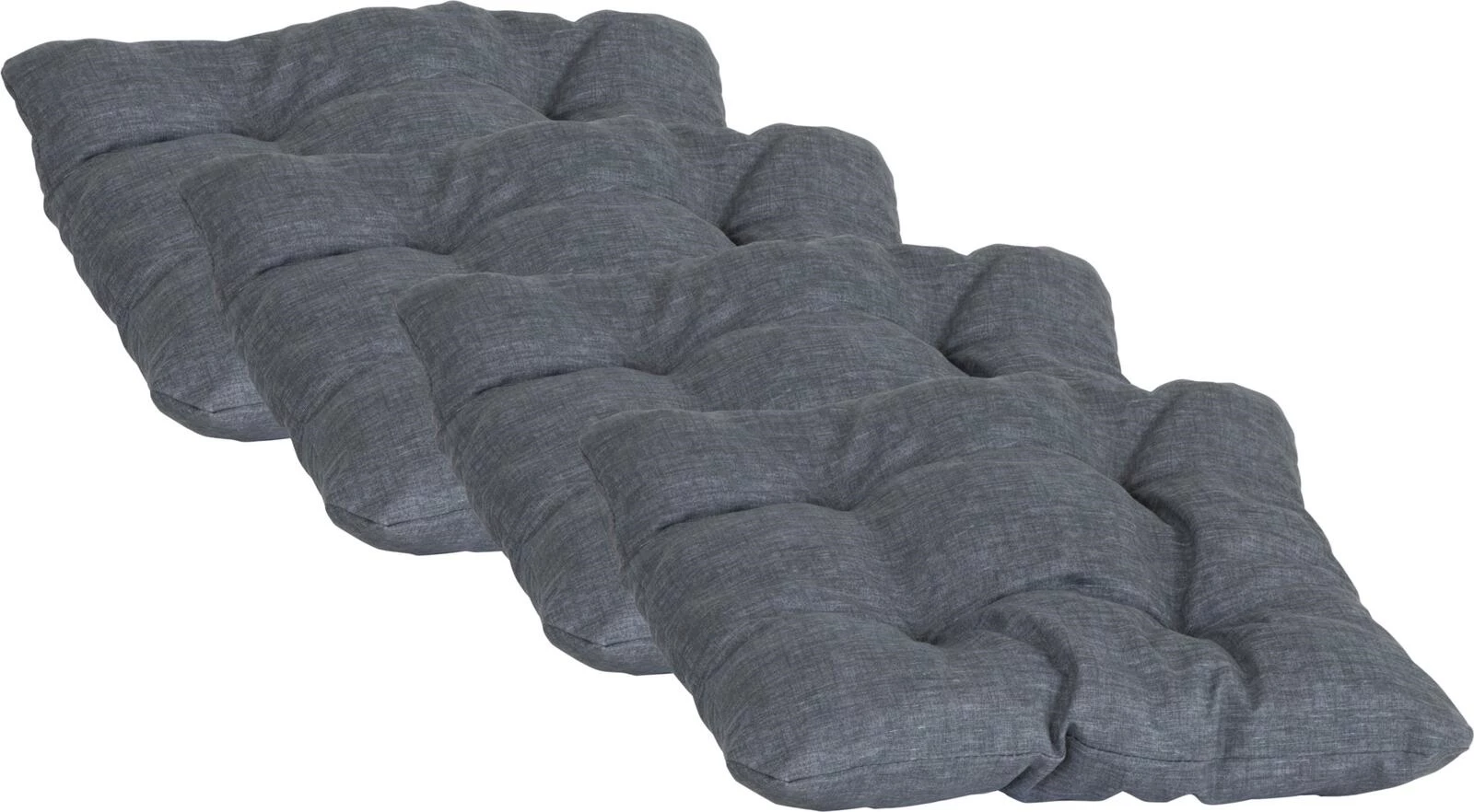 Dieses 4er Set mit anthrazitfarbenen Kissen verschönert Ihre Terrassen- oder Balkonmöbel. Auch im Innenbereich können Sie diese zeitlosen Kissen zur Dekoration benutzen. Die Kissen bestehen aus 50% Polyester und 50% Baumwolle, dadurch sind sie bedingt witterungsbeständig. Wir empfehlen die Kissen bei starken Witterungseinflüssen in einen geschützten Bereich zu bringen. Masse 38 × 38 × 8 cm. Die Kissensets sind in vier verschiedenen Farben erhältlich.