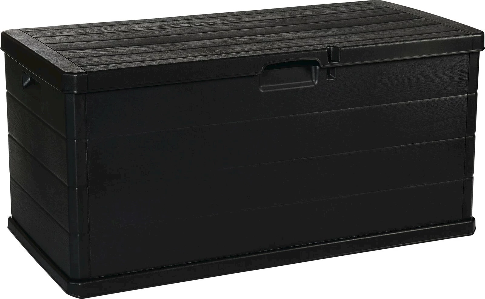 Diese Kissenbox aus Kunststoff ist die ideale Ergänzung für den Garten, die Terrasse oder den Balkon. Die Box ist witterungsbeständig und eine ideale Aufbewahrungsmöglichkeit. Sie kann aber auch als Sitzgelegenheit für zwei Personen genutzt werden. Dank der 4 Räder ist die Box mobil und zudem kann sie mit einem Vorhängeschloss abgeschlossen werden. Die Kiste kann mit maximal 180 kg belastet werden und hat ein Füllvolumen von 340 l. Masse: 119 x 59 x 57 cm.