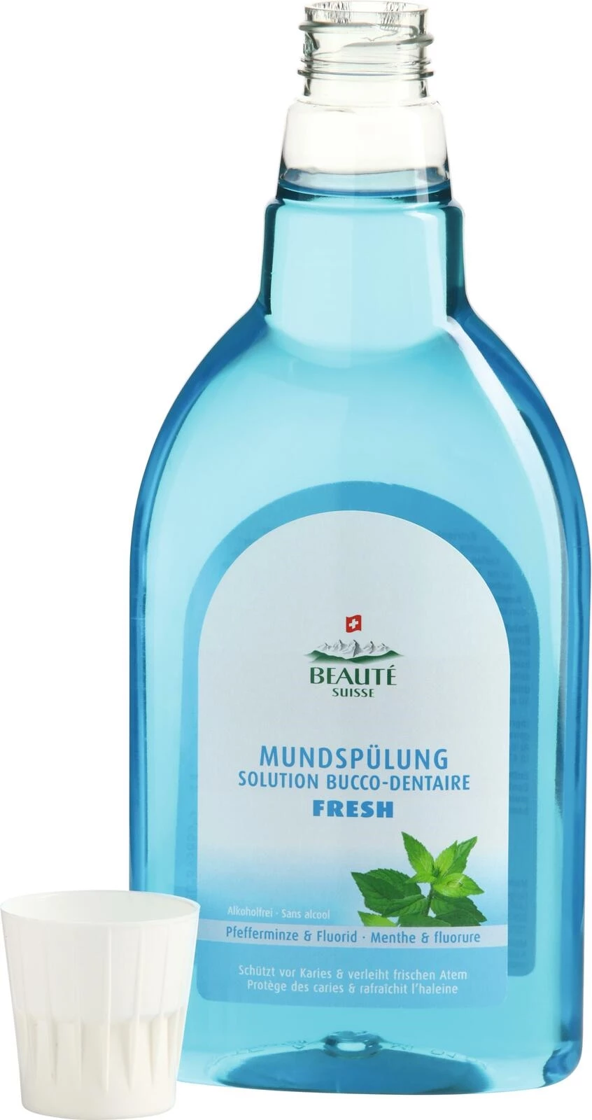 Beauté Suisse. Schützt vor Karies und verleiht frischen Atem. Mit Pfefferminze und Fluorid. Anwendung: Ca. 30 Sekunden uverdünnt spülen. 500 ml.