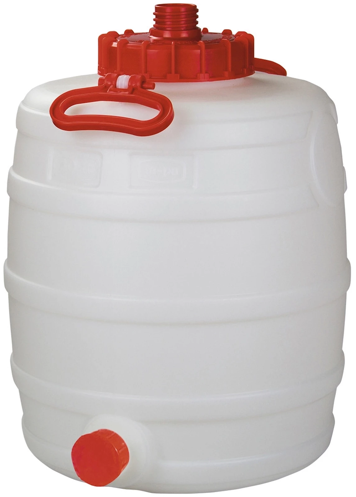 Getränkefass aus Kunststoff (BPA frei), flexibel einsetzbar. Stabile Konstruktion. Mit grosser Einfüllöffnung. Inklusive Auslaufhahn 22 mm.
