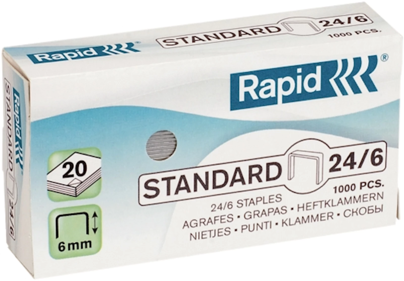 1000 Stück 24/6 Heftklammern. Bis zu 30 Blätter pro Klammer. Die Klammern sind mit verschiedenen Heftgeräten kompatibel.