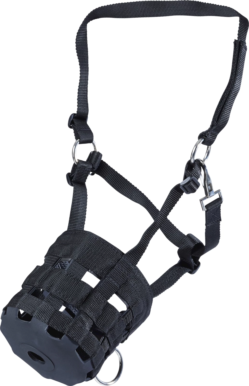 Unsere hochwertige Fressbremse hindert Ihr Pferd an einer übermässigen Nahrungsaufnahme. Dieser Maulkorb mit Verstärkung im Maulbereich sorgt dafür, dass Ihr Pferd weniger Gras fressen kann. Ihr Pferd kann trotzdem am Weidegang teilnehmen, kann aber nicht zu viel Gras zu sich nehmen. Durch den Schnappverschluss am Kehlriemen kann das Halfter einfach An- und Abgezogen werden. Er ist im Genick durch einen Klettverschluss und durch 3 verschiedene Regler anpassbar. Der Klettverschluss im Genick öffnet sich bei zu hoher Krafteinwirkung und verhindert so ein Hängen bleiben. Wir empfehlen diese Fressbremse vorallem für Pferde mit Insulinresistenz oder Übergewicht. Grösse: Cob. Farbe: Schwarz.