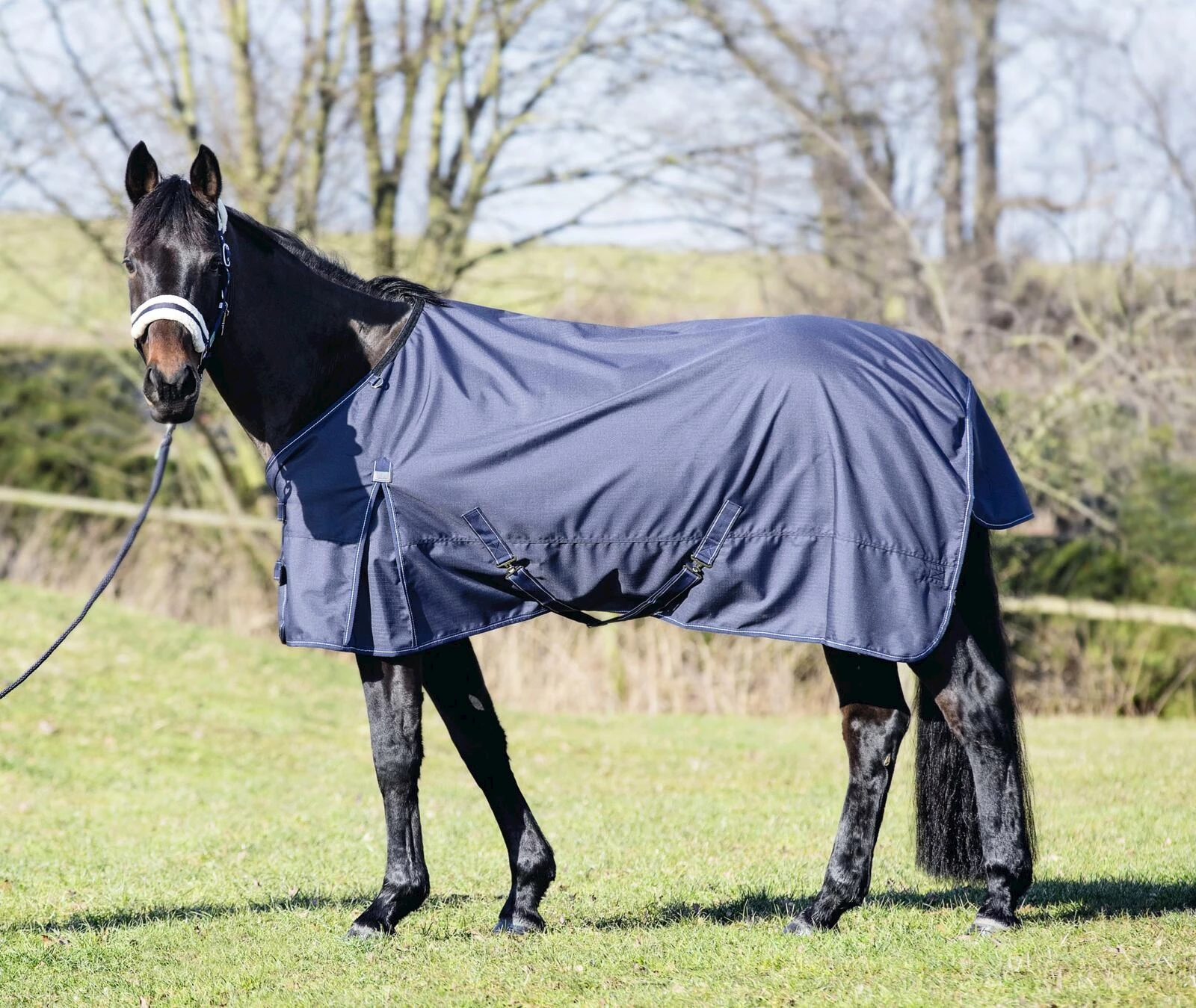 Unsere Paddockdecke sieht nicht nur schön aus, sondern schützt Ihr Pferd auch vor Wind und Regen. Die Decke ist atmungsaktiv, wasserdicht und reissfest - 600 Denier. Das weiche Fleeceinnenfutter bietet zudem eine leichte Abschwitzfunktion und ist zusätzlich wärmend für den empfindlichen Rücken. Die Decke verfügt über zwei T-Verschlüsse an der Brust, Kreuzbegurtung am Bauch und zwei Beinschlaufen, welche bei Nichtgebrauch abmontiert werden können. Die Gehfalten an den Schultern bieten Ihrem Pferd mehr Bewegungsfreiheit und der gepolsterte Widerristbereich verhindert das Aufscheuern der Mähne. Die Decke gibt es in einem schönen Dunkelblau mit einem abgesetzten Einfass und silbernen Näthen. Die Decke in der Grösse 155 cm passt einem Warmblut mit Stockmass 170 cm. Wassersäule 3000 mm.