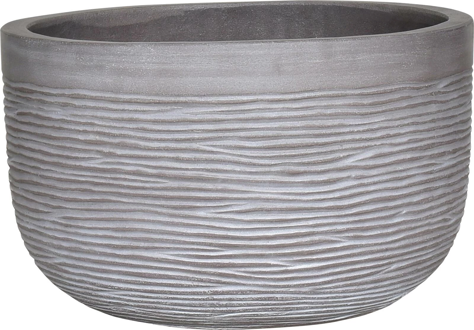 Dieser Zementtopf ist robust, wetterfest und ideal für den Aussenbereich. Mit Bodenloch. Aus einer Mischung aus Sand, Stein und Fiberglas.