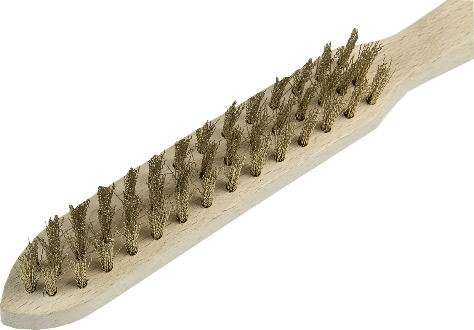 Mit der Drahtbürste aus Messing entfernen Sie Schmutz und Rost mühelos. Die Drahtbürste verfügt über einen Holzkörper und 4 Reihen Messingdrahtborsten. Die Bürste liegt gut in der Hand.