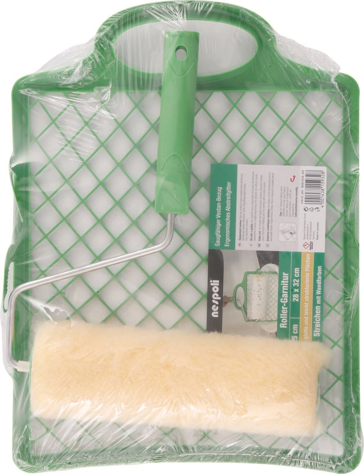 Zum Streichen von glatten und leicht strukturierten Flächen. Inhalt: 25 cm breite Farbrolle und Abstreifgitter.