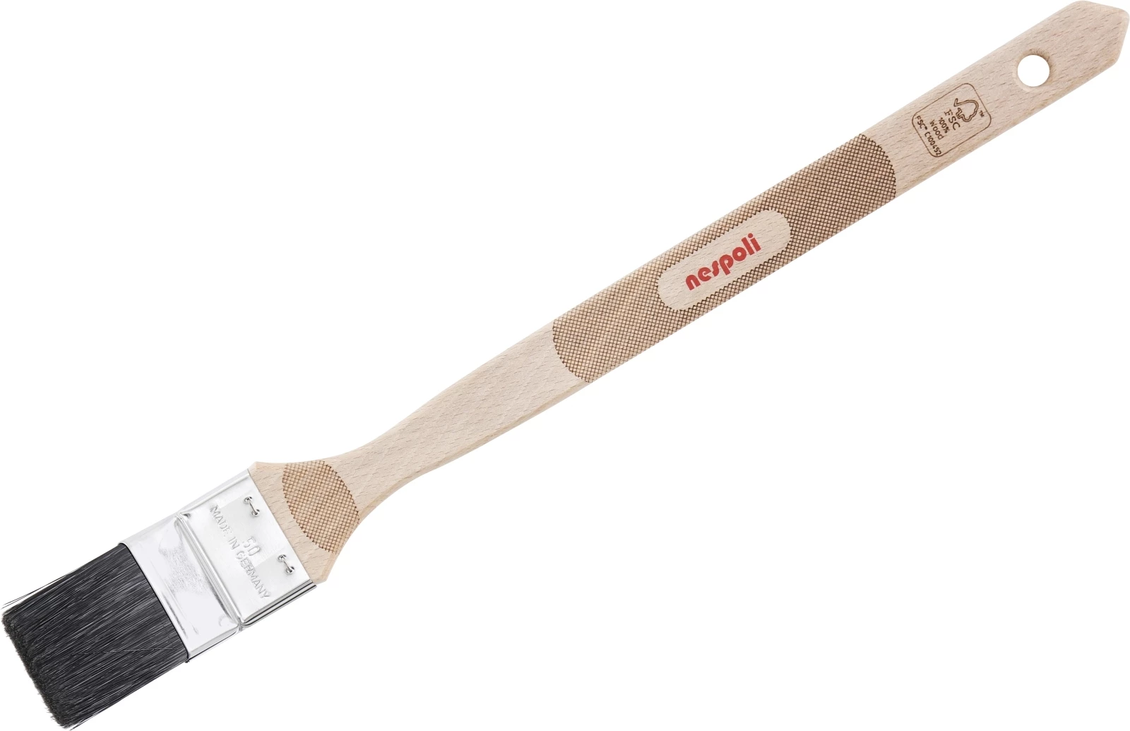 Der Heizkörperpinsel ist ideal zum Lackieren an schwer zugänglichen Stellen wie z.B. hinter Heizkörpern, in Ecken oder Winkeln. Er ermöglicht eine hohe Deckkraft und eine geringe Streifenbildung. Dank FillPro® verfügt der Pinsel über High-Tech Filamente, dies sind einzigartige Kunstfasern, die für ein perfektes Oberflächenfinish sorgen. Die Borsten sind 51 mm lang. Der LaserTouch®-Griff ermöglicht eine bessere Griffigkeit und sorgt für einen sicheren und festen Halt.