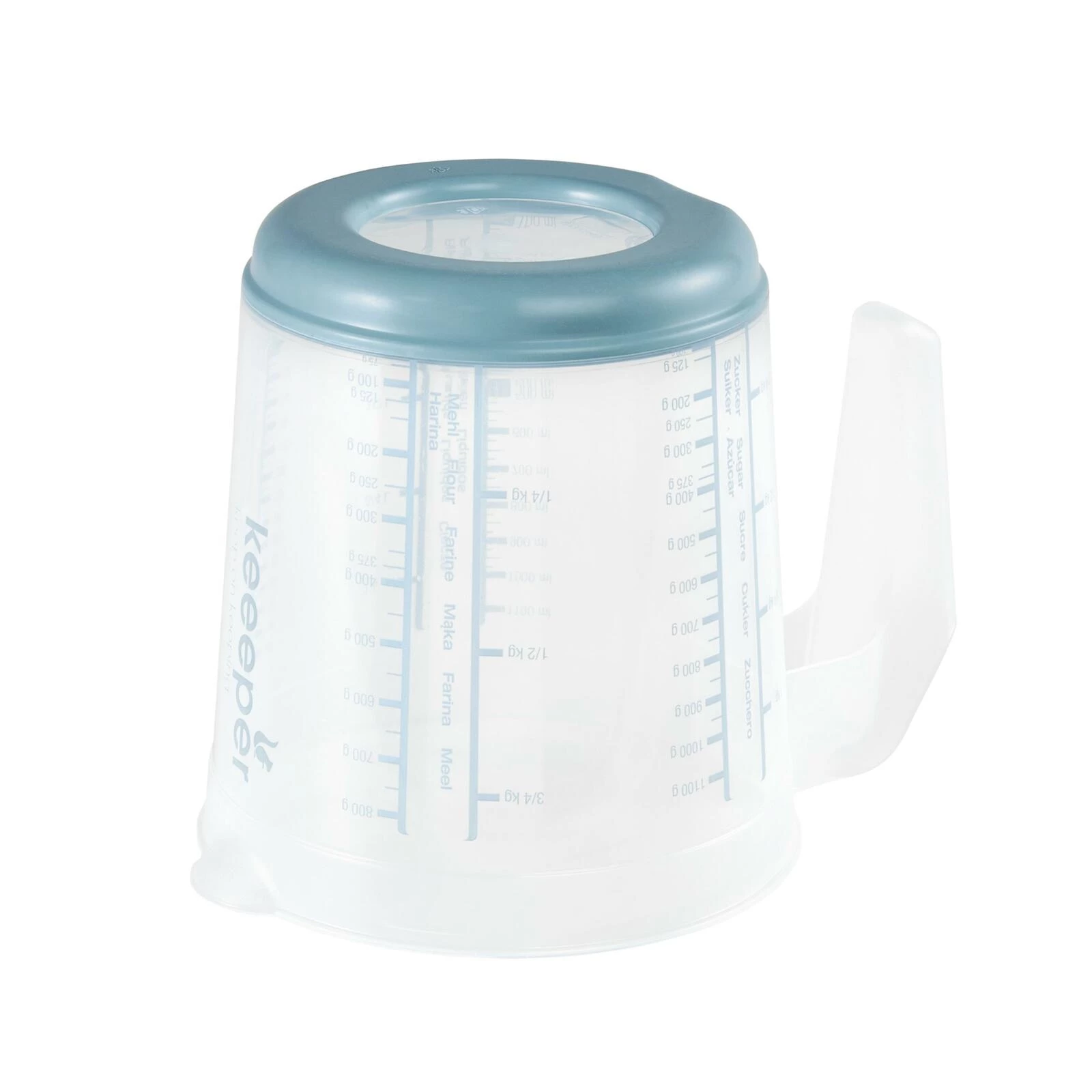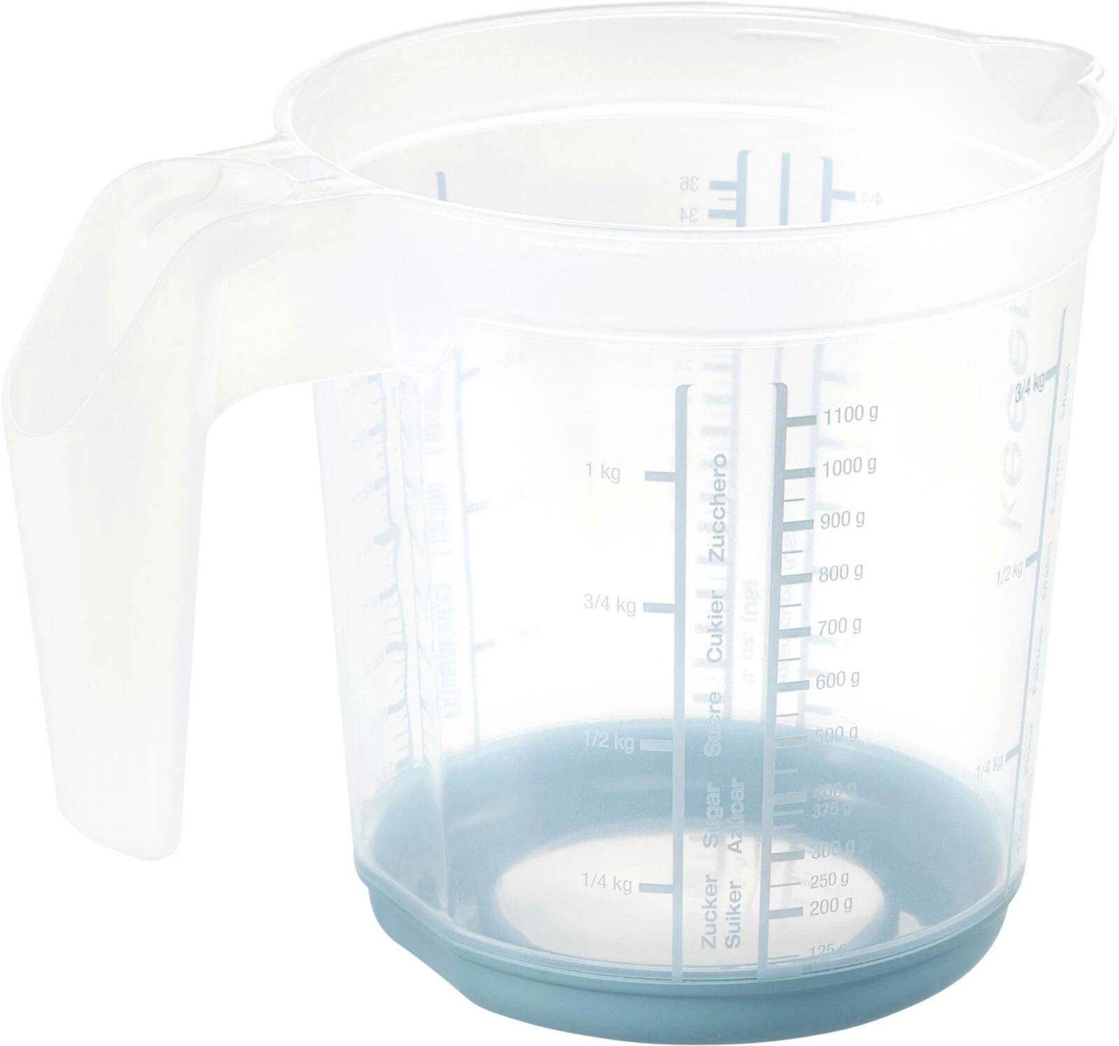 Für präzises Dosieren im Küchenalltag. Mit Skala für Mehl, Zucker und Flüssigkeiten. Robust, spülmaschinengeeignet und griffig.