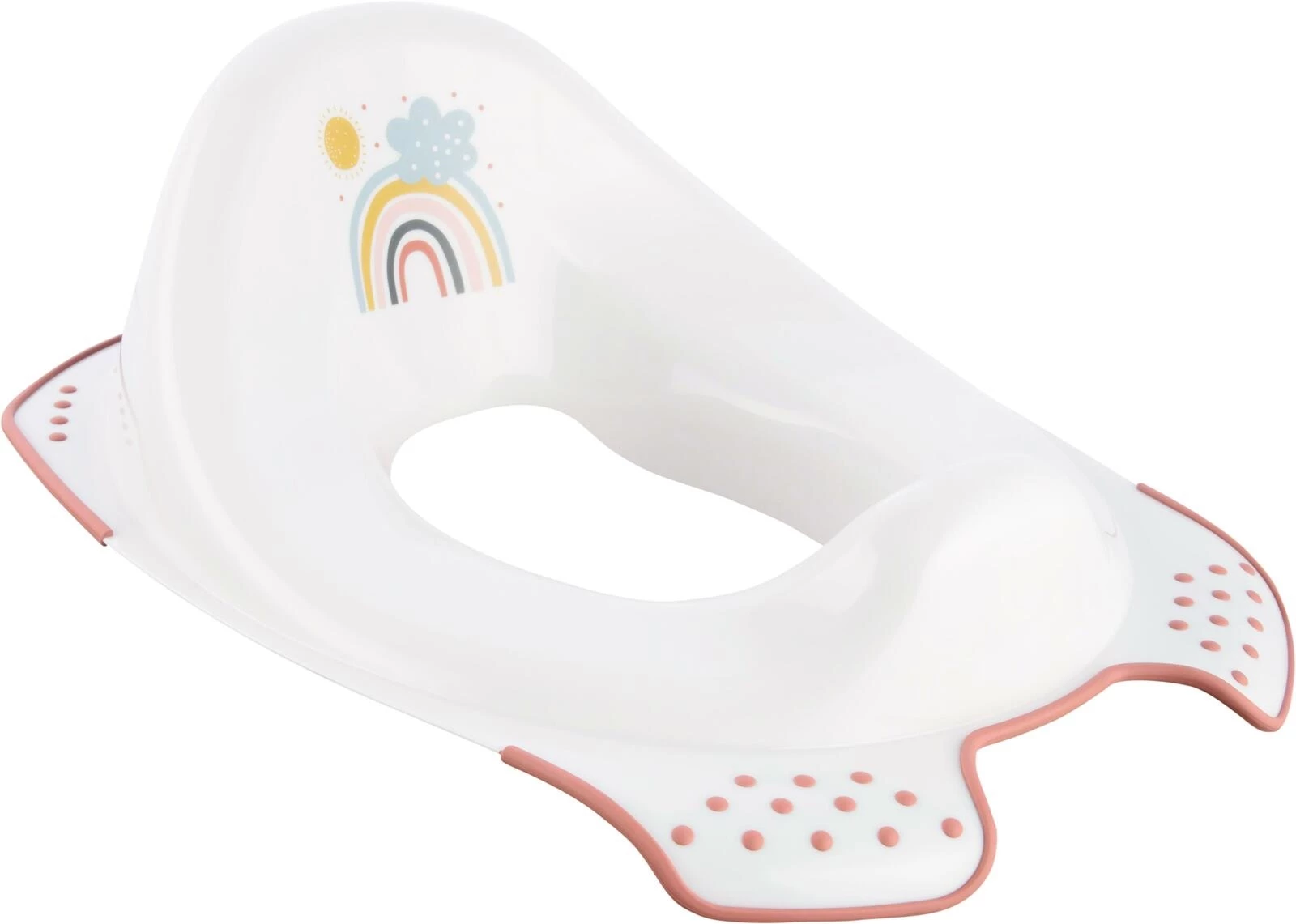 Der farbenfrohe Toilettensitz mit Regenbogenmotiv unterstützt Kinder dabei, spielerisch und sicher den Weg zum selbständigen Toilettengang zu meistern. Die weichen Formen und gerundeten Kanten sorgen für einen angenehmen Sitzkomfort, sodass sich Ihr Kind jederzeit wohlfühlt. Dank des rutschfesten Materials auf der Unterseite sitzt der Aufsatz stabil und sicher auf der Toilette. Die Reinigung gelingt mühelos durch einfaches Abwischen oder Abspülen. Bei Nichtgebrauch lässt sich der Toilettensitz platzsparend wegräumen oder bequem aufhängen. Masse: 23 × 16 × 21,5 cm.