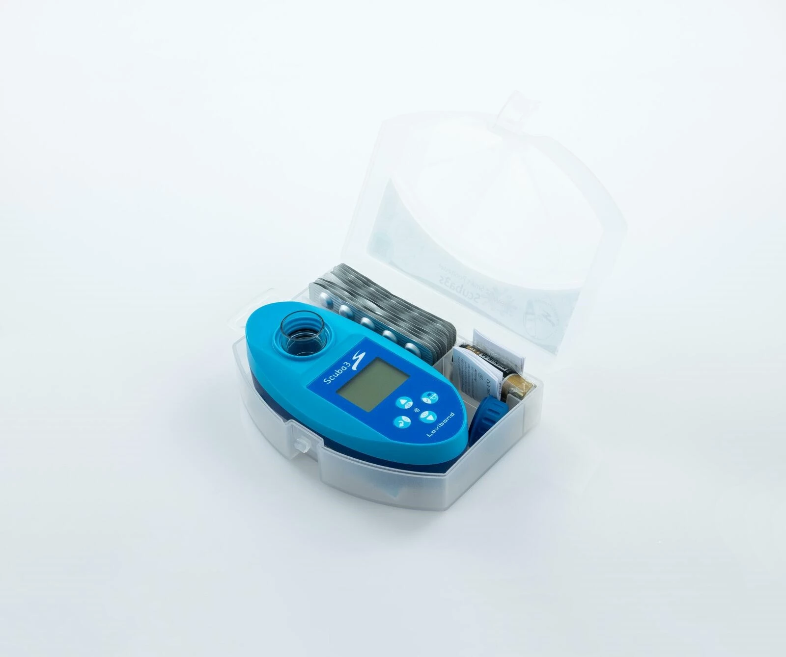 Zur Messung von Chlor (frei und gebunden), Brom, pH-Wert, Alkalität und Cyanursäure. Inkl. Reagenztabletten. Einfache Bedienung.