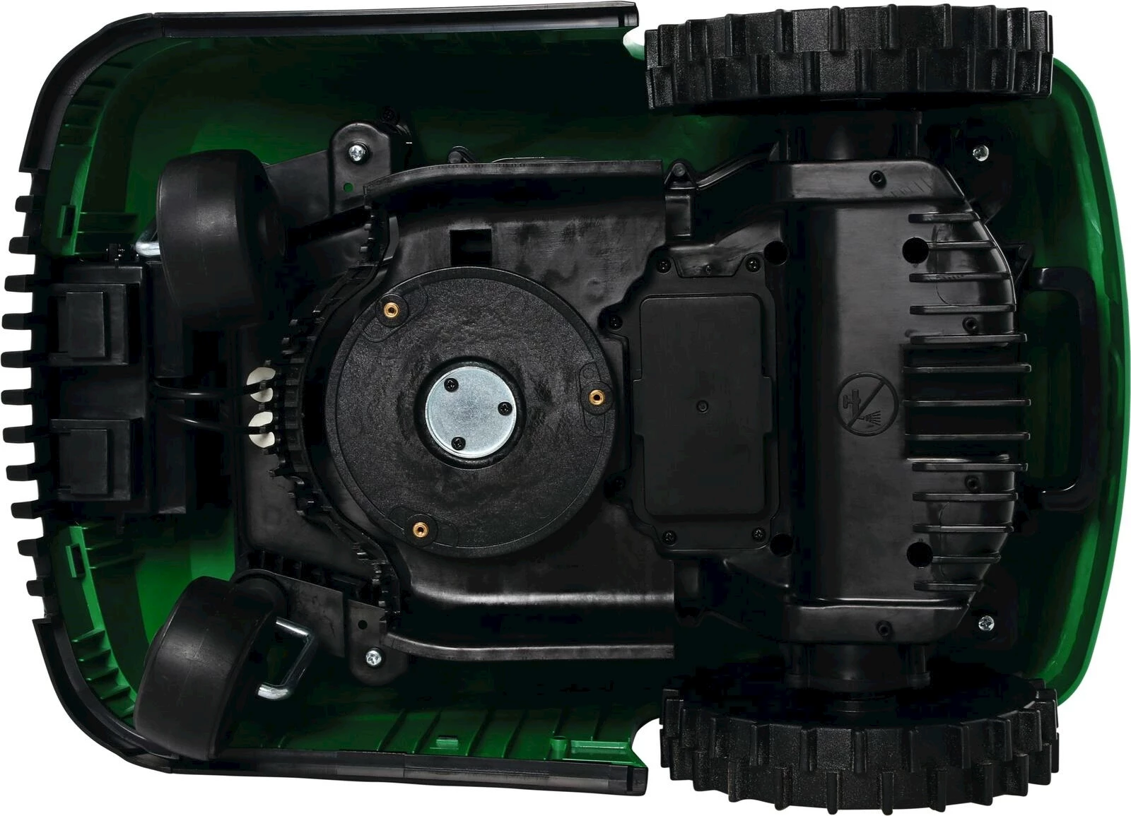 Der Rasenmäher Roboter mäht den Rasen ohne einen Auffangkorb. Der Rasen wird klein gehäckselt, danach fällt das Schnittgut zwischen die einzelnen Grashalme. Das Schnittgut, welches sich direkt auf der Erde befindet, dient als Dünger und schützt den Rasen im Sommer vor dem Austrocknen.