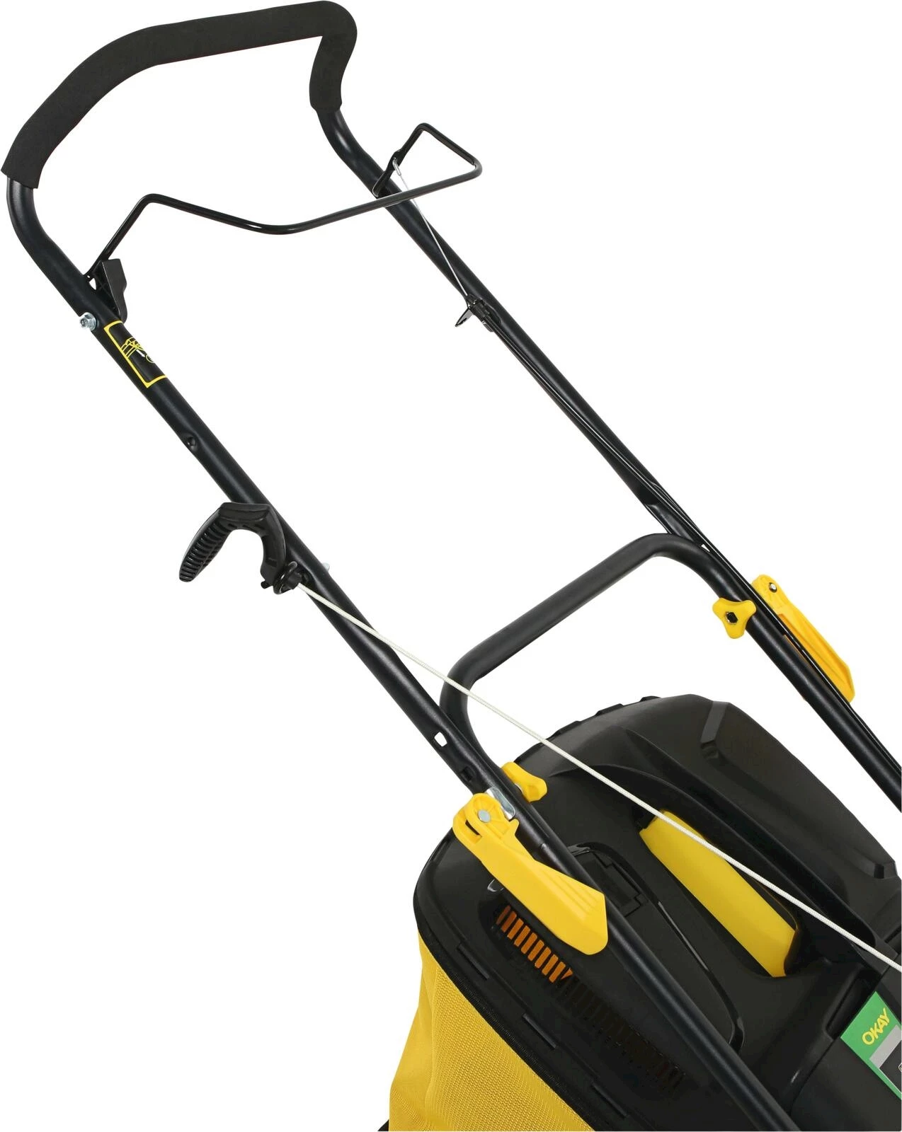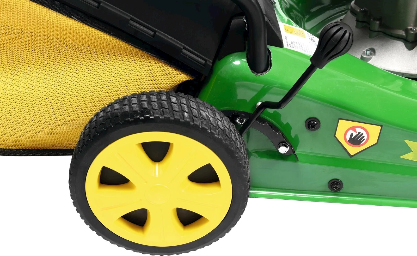 Der Rasenmäher Benzin Okay LuckyPlus ist mit einem Stahldeckgehäuse und einem Mulchkit ausgestattet. Die Schnitthöhe des Rasens kann auf 7 Stufen (25 mm - 75 mm) eingestellt werden und die Schnittbreite beträgt 46 cm. Das Fangvolumen des Rasenmähers beträgt 50 l. Mit dem enthaltenen Mulchkit können Sie in einem Arbeitsgang mähen und düngen. Wir empfehlen Ihnen den Rasenmäher Benzin Okay LuckyPlus auf einer Fläche von maximal 1200 m² einzusetzen. Die Auslieferung erfolgt unmontiert. Die Garantiedauer beträgt 5 Jahre.