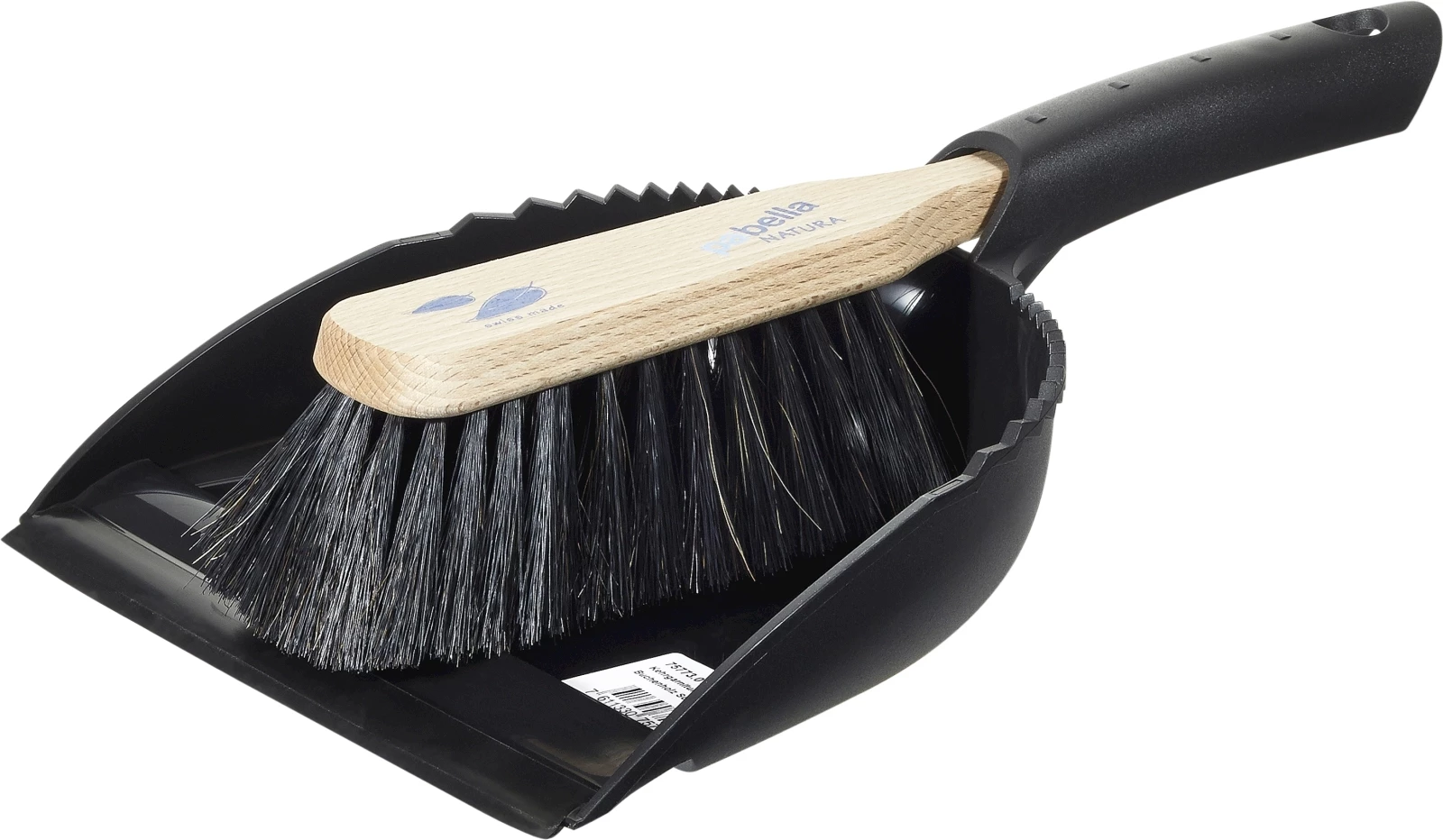Mit Pferdehaar verstärkt. Kehrichtschaufel schwarz mit Gummilippe.