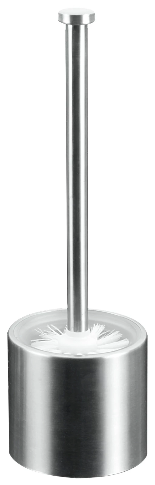 Die WC-Garnitur aus Inox hat einen Glaseinsatz, welcher eine einfach Reinigung ermöglicht. Sie hat eine satinierte Oberfläche. Der Durchmesser beträgt 10 cm und die Höhe 36 cm.