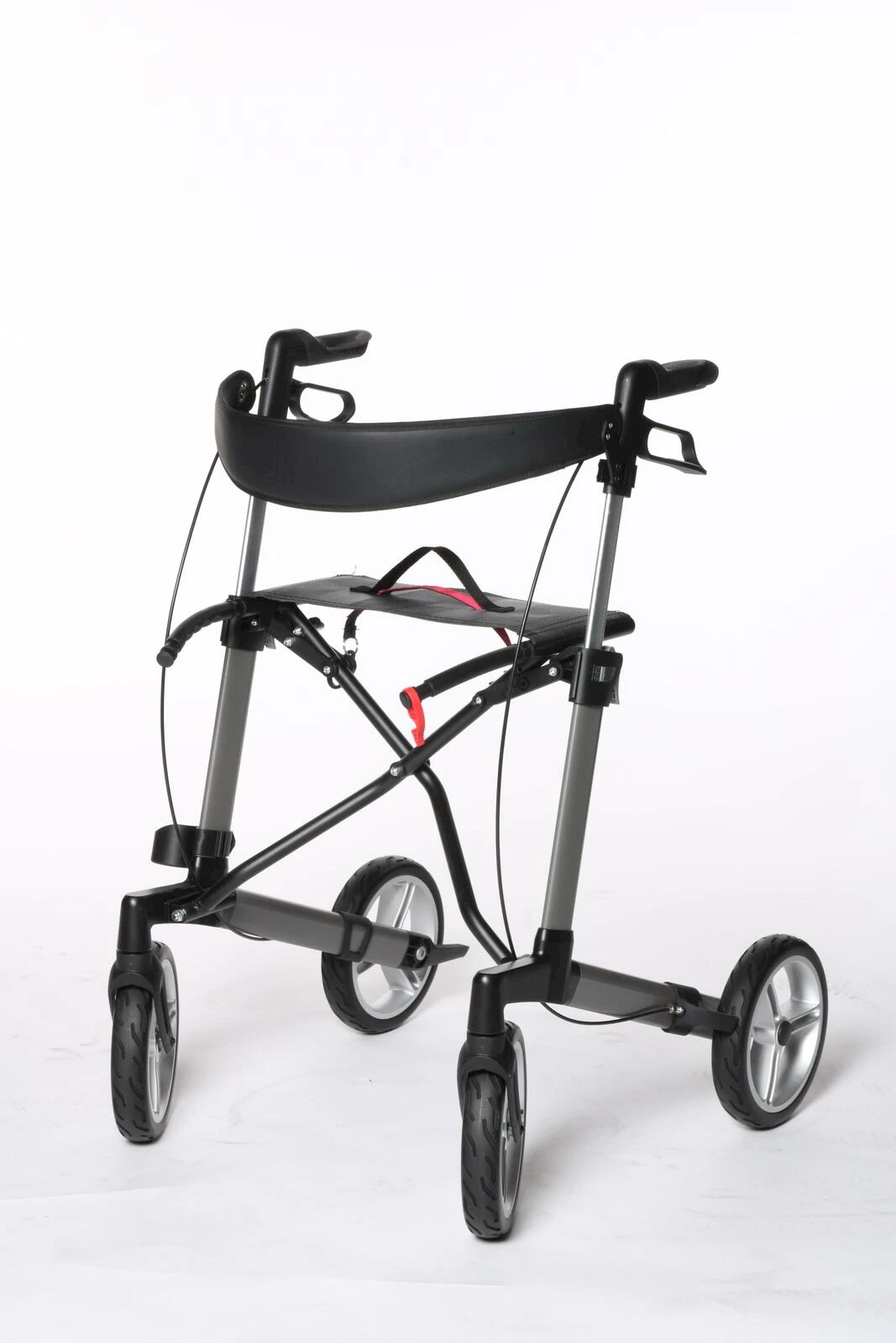 Höhenverstellbar (76 – 97 cm) und klappbar. Mit Aufklappsitz mit Korb. Feststellbremse. Max. Körpergewicht: 130 kg.