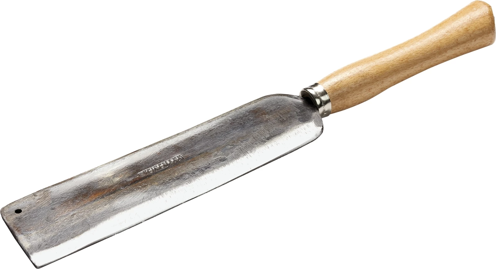 Die Gertel Bernerform 28 cm wird zum Abschlagen von Zweigen und Ästen verwendet. Die Klinke ist 28 cm lang und hat ein Loch. Holzart: Buche.