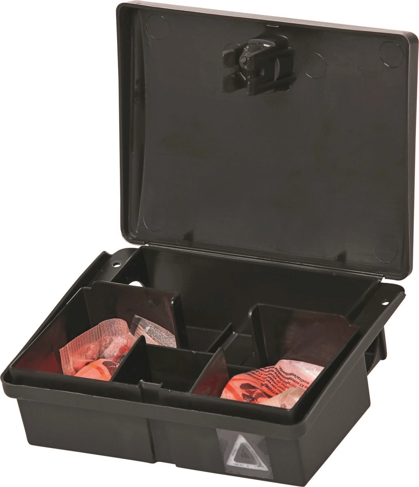 Nachfüllung: Bei der Wiederverwendung der Köderstation als Ramor Tabs Nachfüller separat verkauft: Die Köderstation mit dem ausgestatteten Schlüssel öffnen und bis 50 g Produkt in die entsprechenden Spalten auslegen, dann die Köderstation wieder schliessen. Den Schlüssel für das nächste Nachfüllung aufbewahren. Köderstation und Nachfüllen unzugänglich für Kinder, Haustiere und Vögel aufbewahren und platzieren. Die Anweisungen auf dem Produktetikett befolgen.