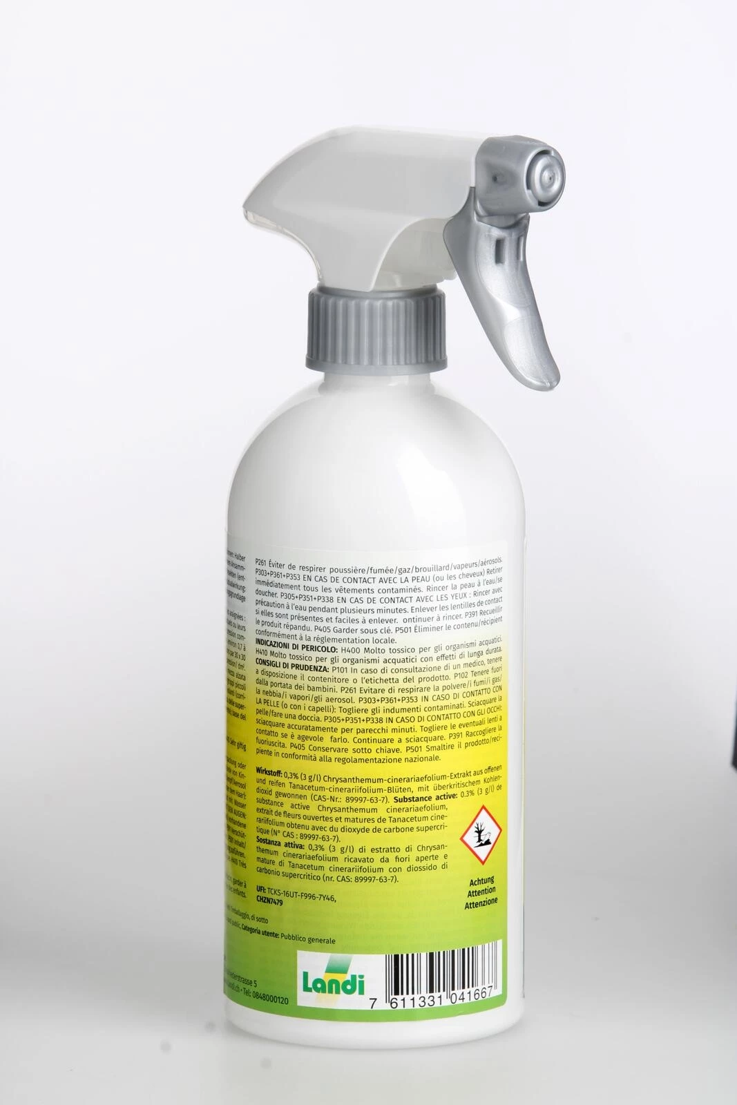 Nicht auf Tiere sprühen und nicht mit Bleichmitteln mischen.