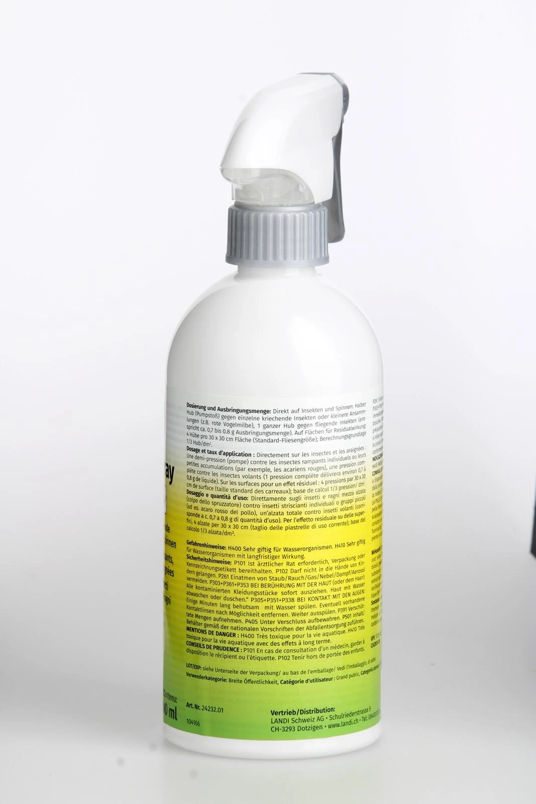 Der Sprühkopf soll etwa 20 cm von der Fläche oder dem Insekt entfernt sein.