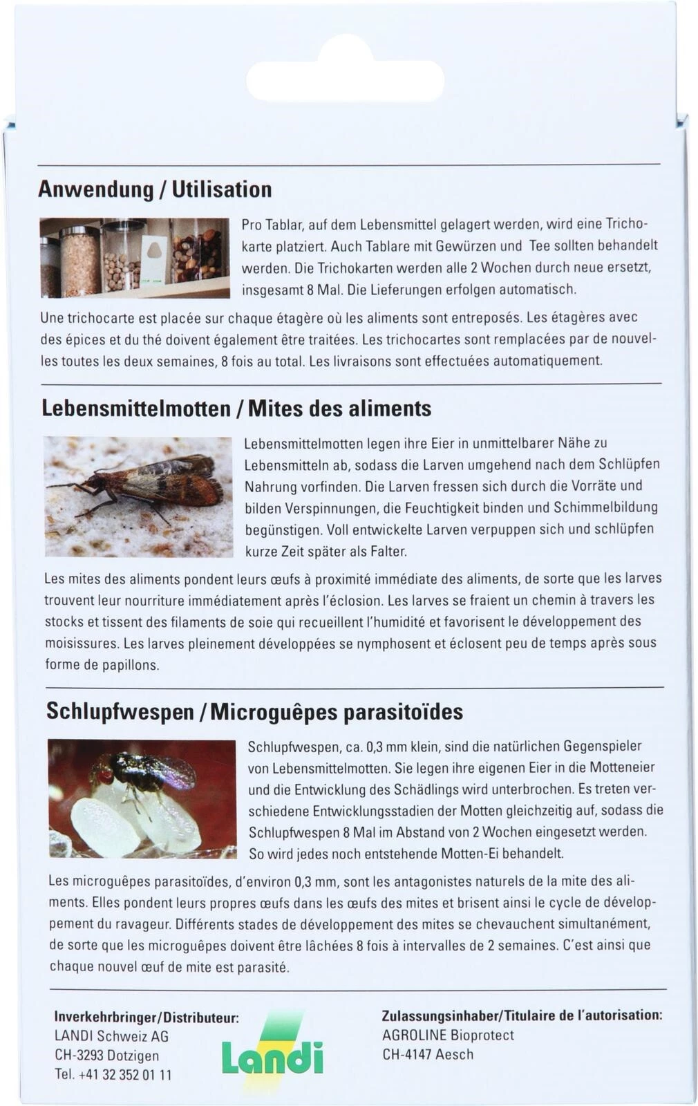 Capito. Nützliche Schlupfwespen (Trichogramma evanescens) gegen Lebensmittelmotten. Das Programm enthält 8 Lieferungen im Abstand von 2 Wochen.