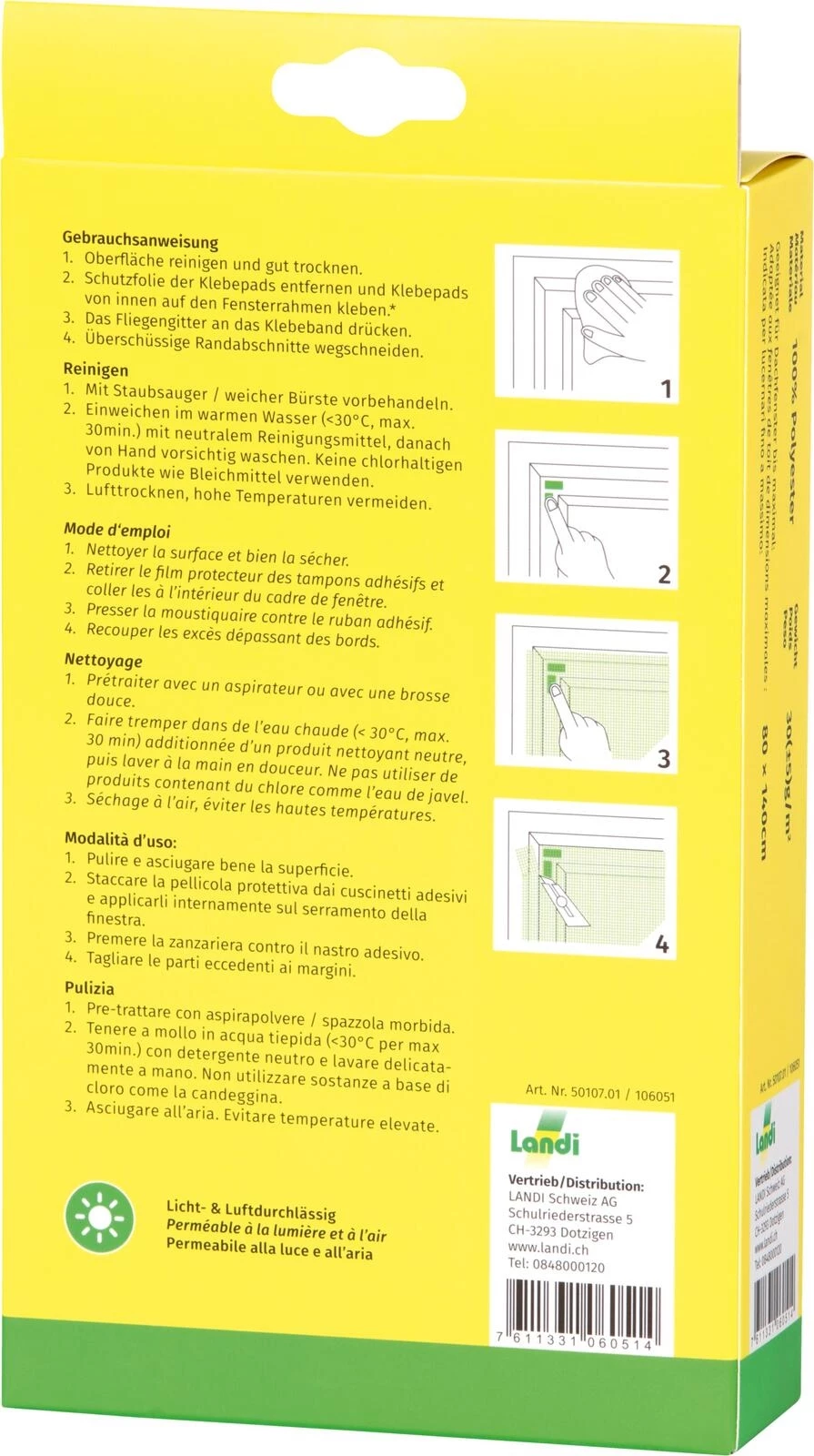 Das Fliegengitter aus weissem Polyestergewebe mit Mikro-Maschen bietet zuverlässigen Schutz vor Insekten und ist speziell für den Einsatz an Dachfenstern geeignet. Das Netz sorgt für eine gute Luftzirkulation und hält Insekten effektiv fern. Das Material ist reissfest, langlebig und UV-beständig bei normaler Nutzung.