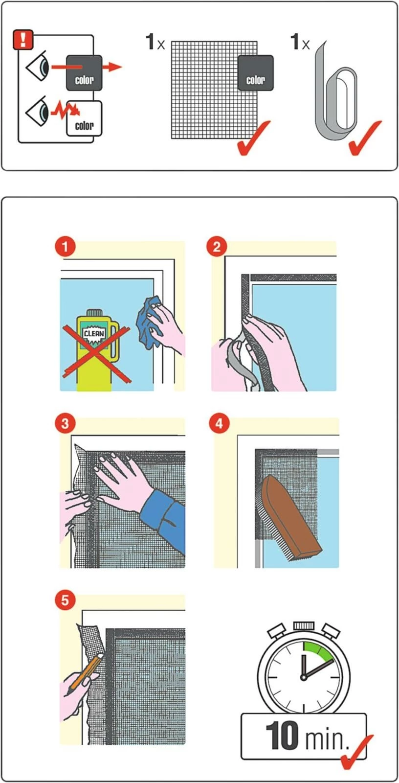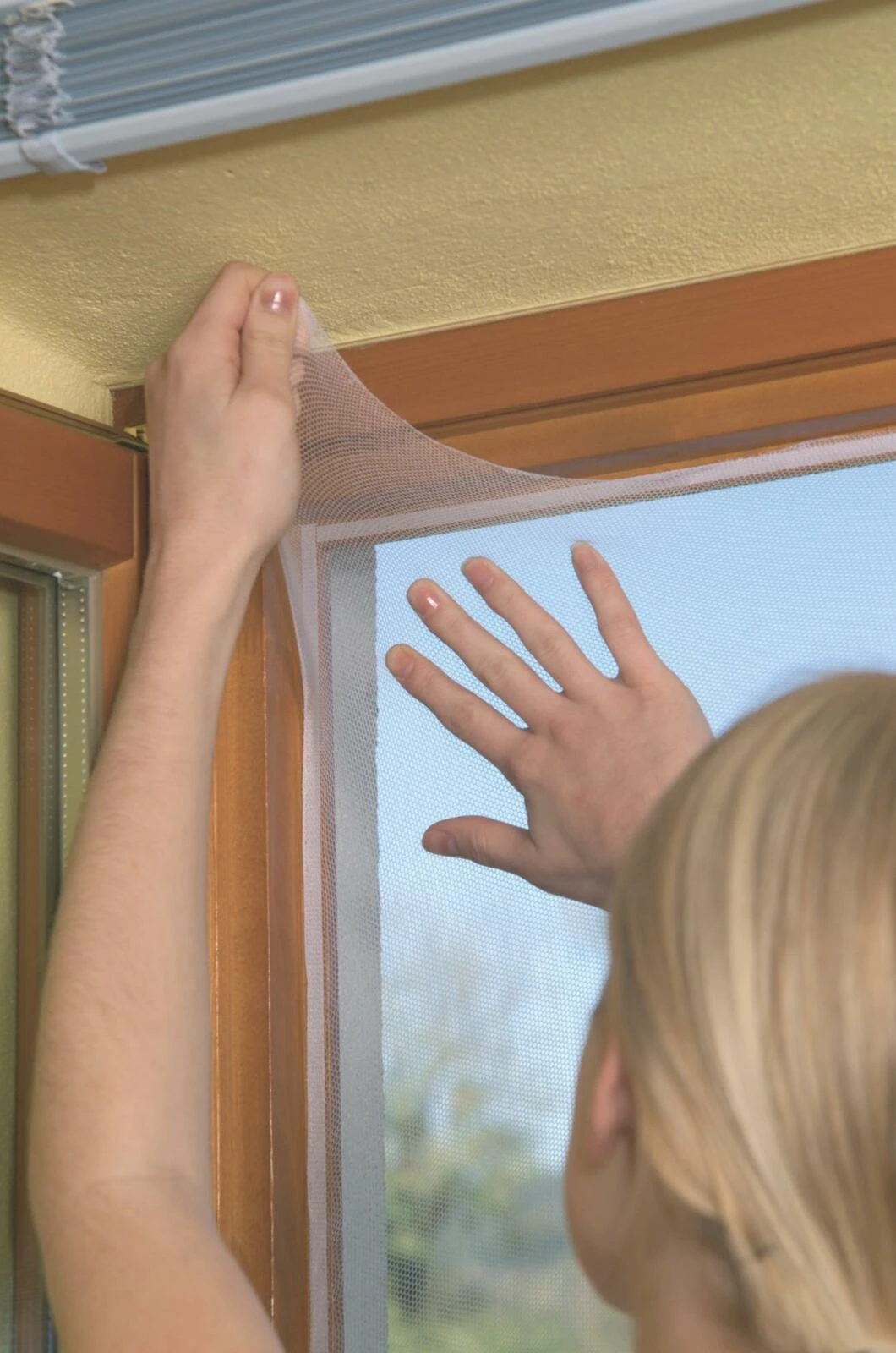 Elastisches Gewebe mit Klettband. Besonders für Fenster mit Wetterschenkel am Fensterflügel geeignet. Die Montage erfolgt mit dem beigepackten Klettband (5,6 m). Gewebe aus 83% PA und 17% Elastan. Waschbar bei 30 °C.