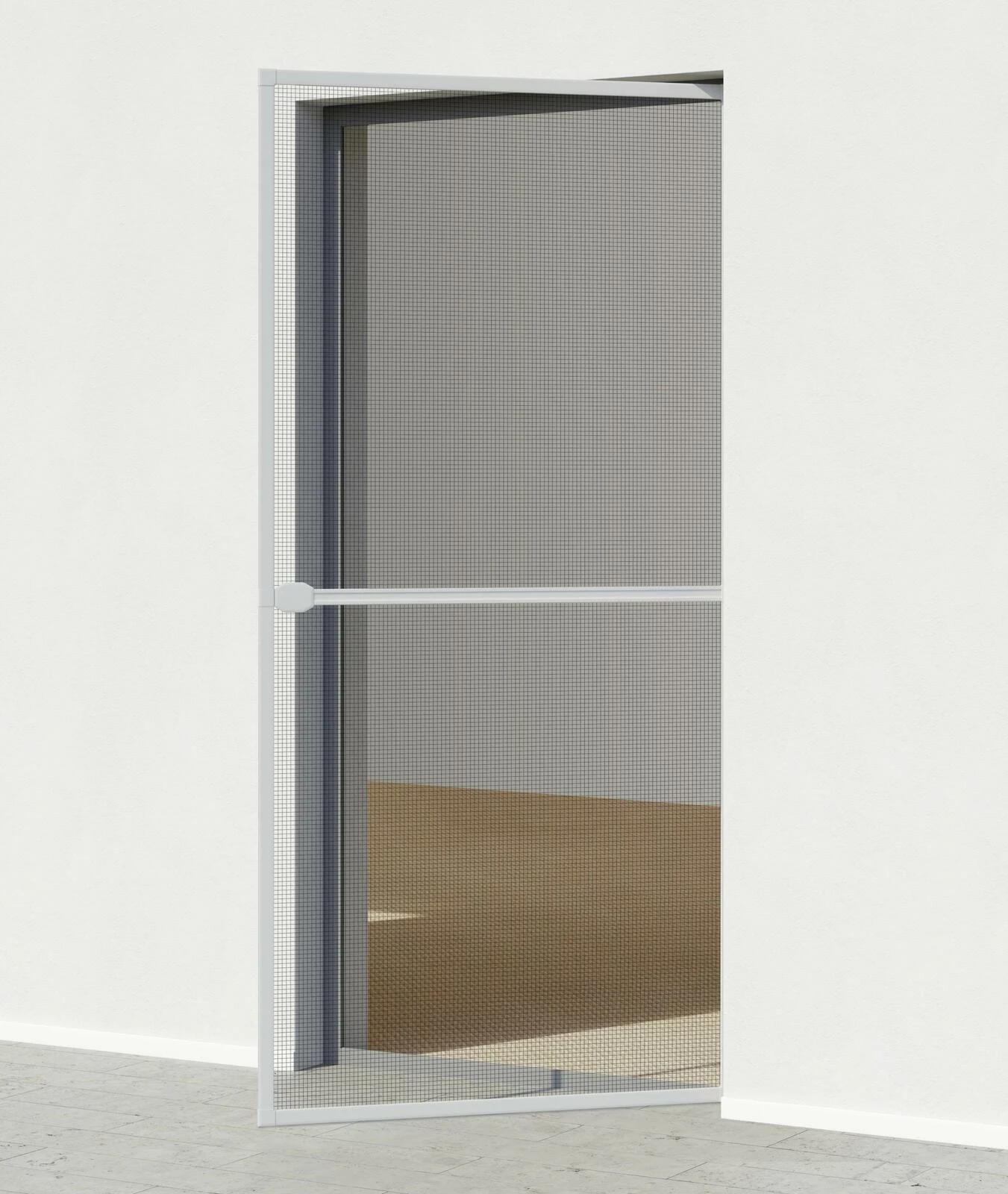Insektenschutz Drehflügeltür. Mit Aluminium-Profilen und hochwertigem Fiberglas-Gewebe. Inkl. Montage-Zubehör für alle gängigen Türgrössen geeignet. Individuell kürzbar.