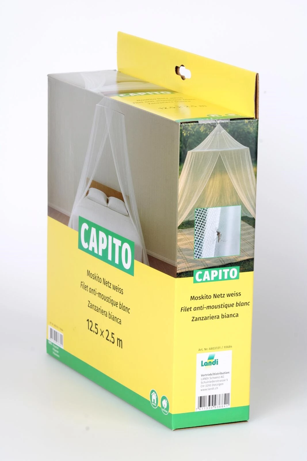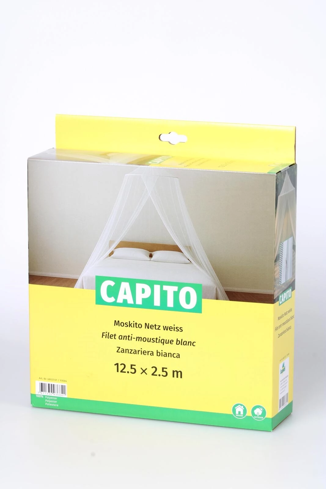 Capito. Bietet Schutz vor lästigen und potenziell gefährlichen Insekten. Farbe: Weiss. Ø Spitze: 65 cm. Material: 100 % Polyester. Umfang: 12,5 m. Höhe: 2,5 m.