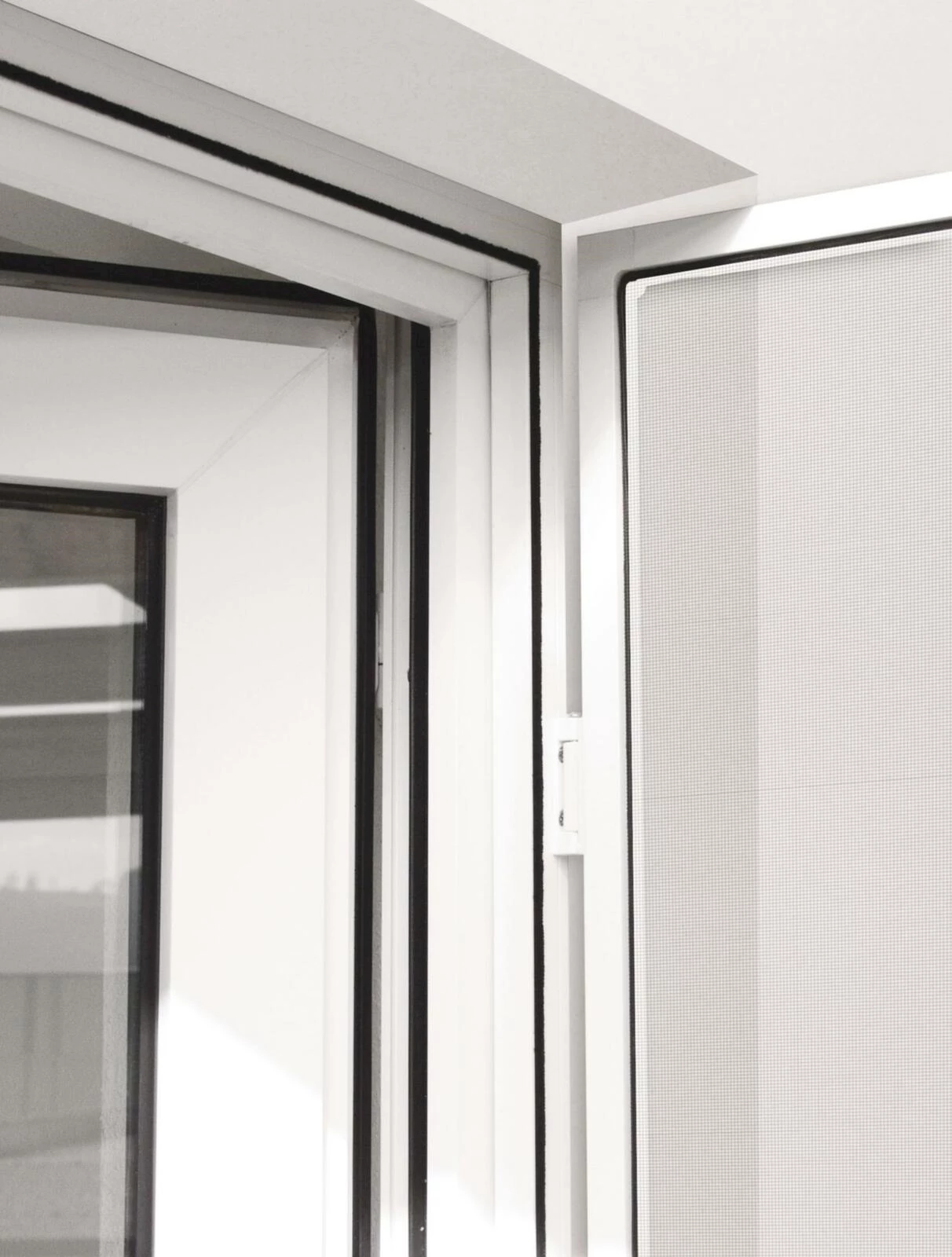 Zur Befestigung von Insektenschut Drehflügeltüren ohne Boren in die Leibung