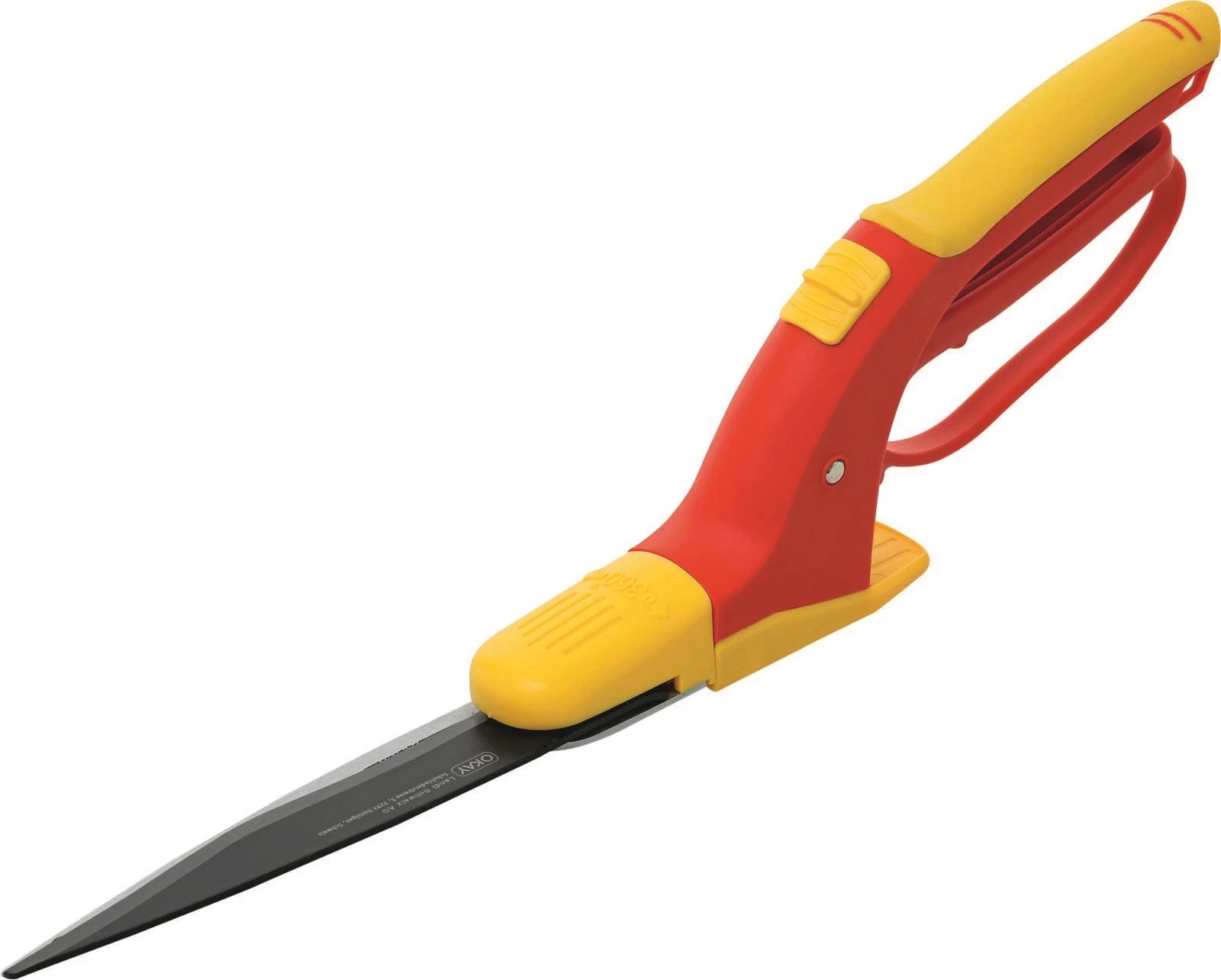 Die Rasenschere Okay Pro, drehbar überzeugt mit ihrem 360 ° Griff und dem bequemen 2-Komponenten-Griff. Die Schneideblätter sind selbstschärfend, gewellt und gehärtet und werden aus Karbonstahl hergestellt. Beim Betätigen der Schneidmechanik wird der Sicherheitsverschluss automatisch entriegelt. Die Rasenschere Okay Pro, drehbar ist für Links- und Rechtshänder geeignet.