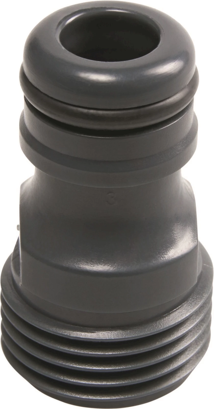 Zum Anschliessen von Bewässerungsgeräten. G 1/2" (21 mm) Aussengewinde. Max. Wasserdruck: 8 bar. Material: Kunststoff.