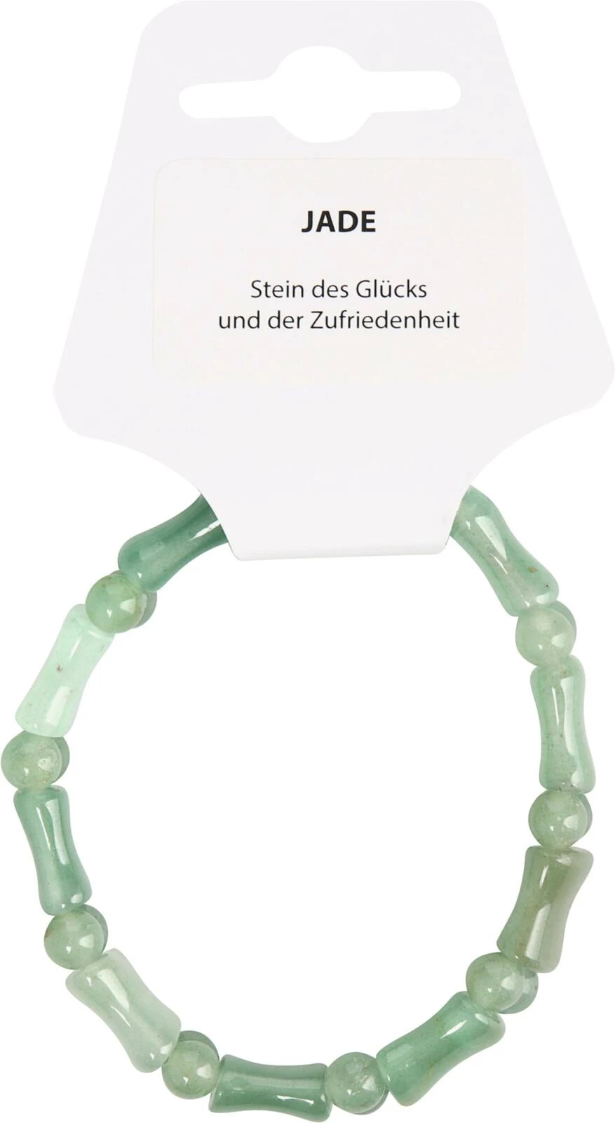 Das Jade-Steinarmband mit ca. 8 mm Perlen ist auf ein elastisches Band gefädelt, sodass es sich an jedes Handgelenk anpasst. Jade fördert Glück, Zufriedenheit und innere Ruhe.