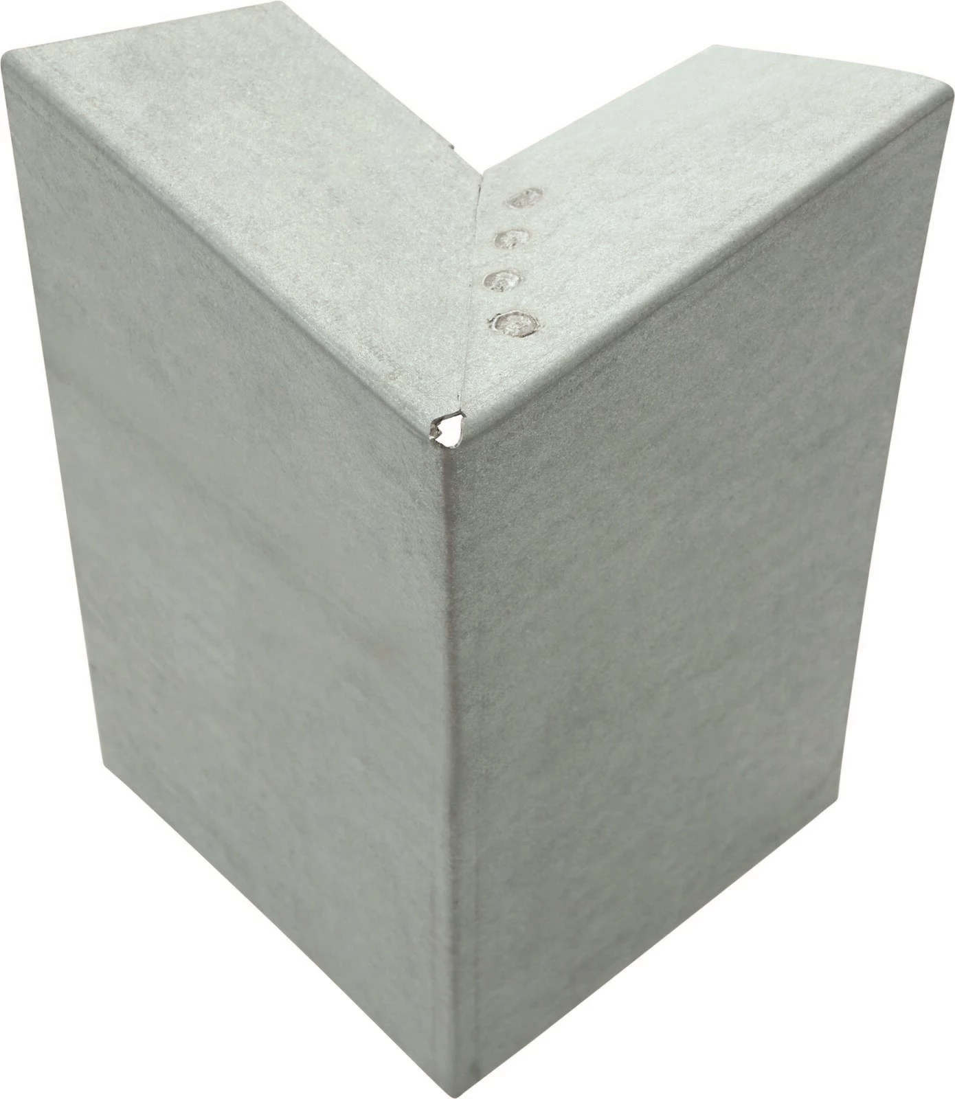 Eckelement zum Schneckenzaun Längselement. Aus verzinktem Stahlblech mit nach aussen gefalztem Rand. Sehr wetterbeständig. Einfache Installation. Masse: 7 × 7 × 25 cm.