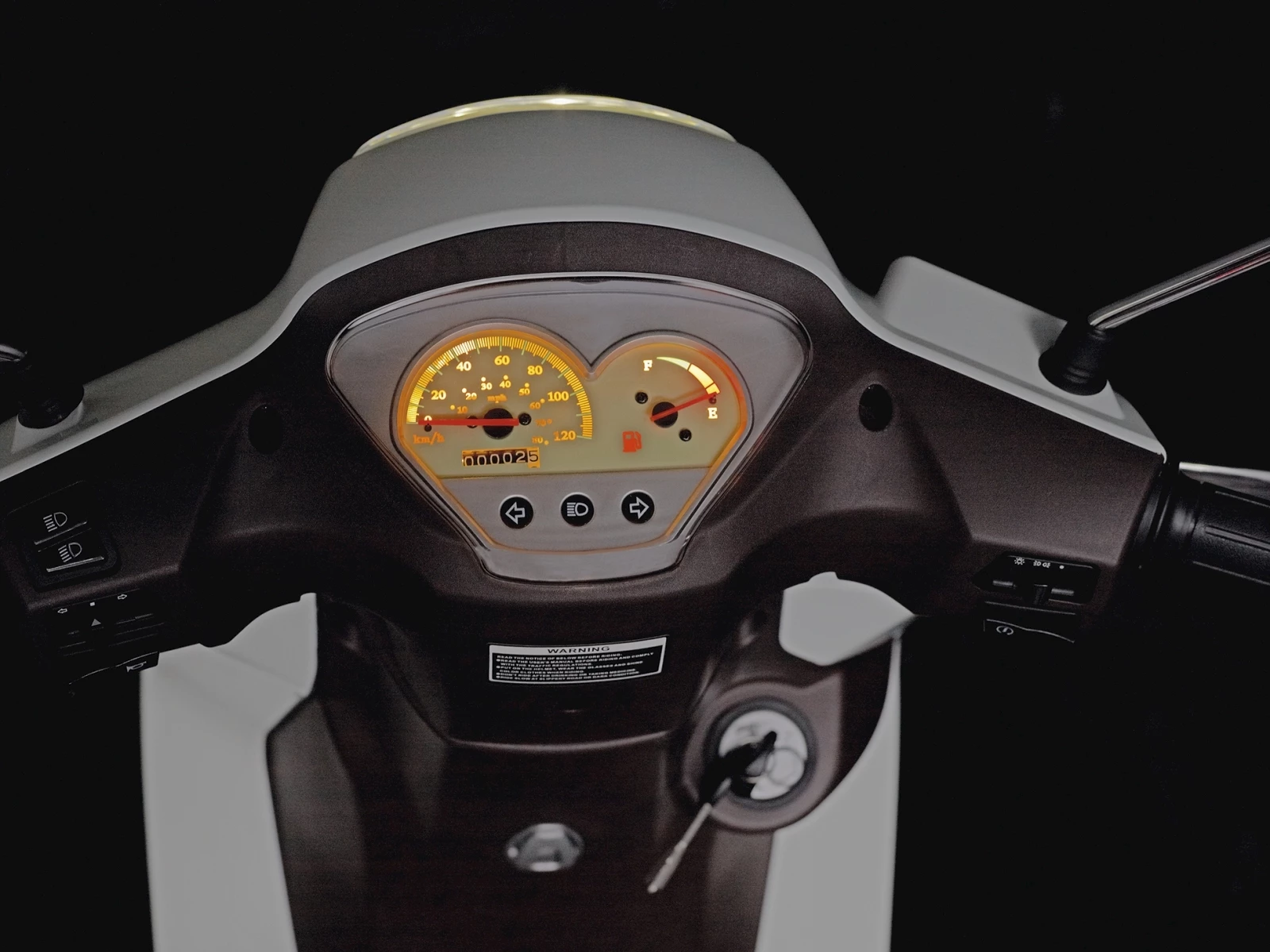 Hauptständer, Seitenständer, Zünd-/Lenkschloss, Seitenspiegel links und rechts, Sitzbank mit Soziusplatz, Helm-/Gepäckhacken, Staufach unter Sitzbank, zentrale Sitzbankentriegelung, Gepäckträger, abschliessbarer Tankdeckel, Tankanzeige, LED Standlicht vorne, Katalysator, Alufelgen, CBS-Bremsen, automatisches Tagfahrlicht, WarnblinkanIage.