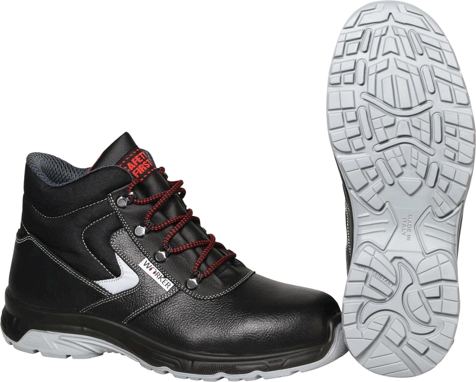 Wörker. Metallfrei. Mit Compositkappe und Schutzsohle. Laufsohle: Double Density Polyurethan. Sicherheitsklasse: S3. Grössen: 40 - 47.