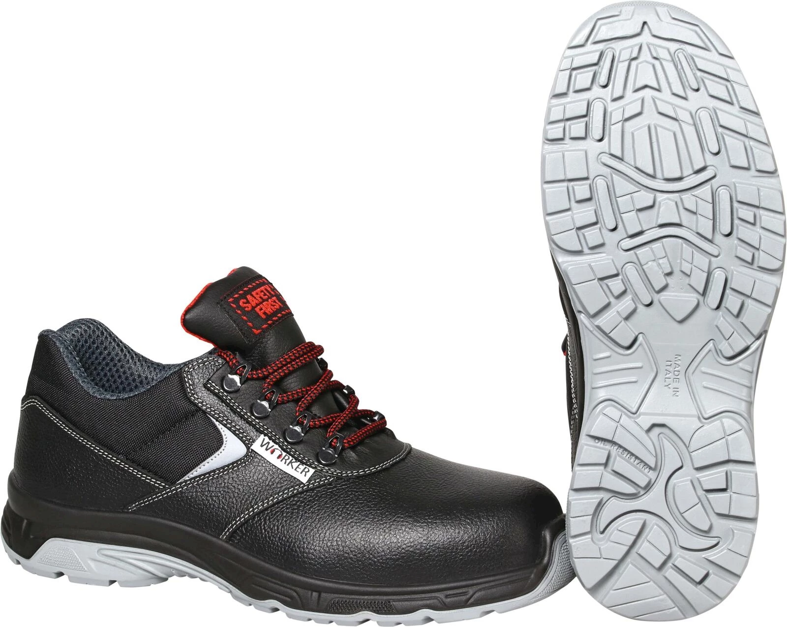 Wörker. Metallfrei. Mit Compositkappe und Schutzsohle. Laufsohle: Double Density Polyurethan. Sicherheitsklasse: S3. Grössen: 38 - 47.