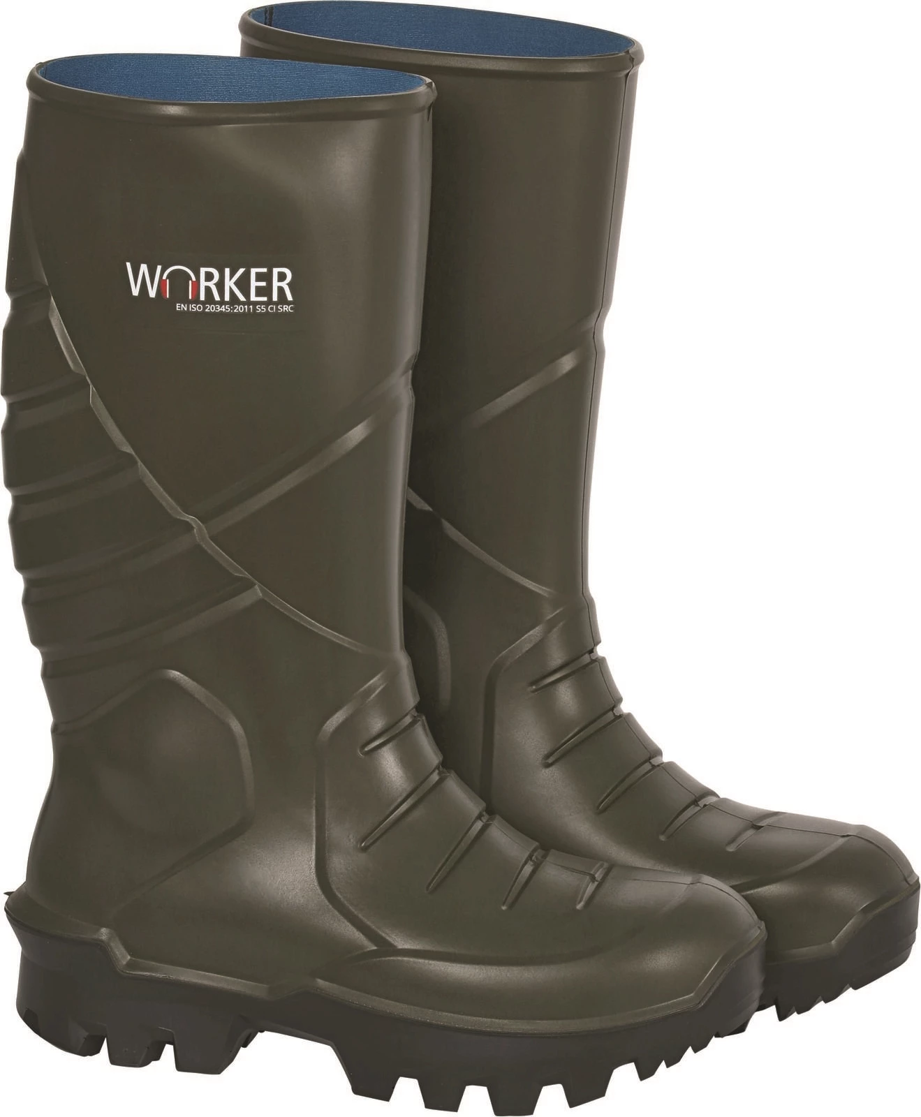 Mit der Schutzkappe bieten Ihnen der Thermo Sicherheitsstiefel S5 von Wörker optimalen Schutz in der Landwirtschaft oder auf dem Bau. Die Stiefel werden aus Polyurethan (PU) hergestellt und sind staubdicht, düngerbeständig und verschleissfest. Die Sohle aus Polyurethan ist leicht zu reinigen. Im Innern des Stiefels befindet sich eine herausnehmbare, antistatische 2-Schicht-Einlegesohle mit extra griffigem Aufdruck. Dank der Isolierung sorgen die Stiefel für warme Füsse bis - 50 °C. Farbe: Olivgrün.