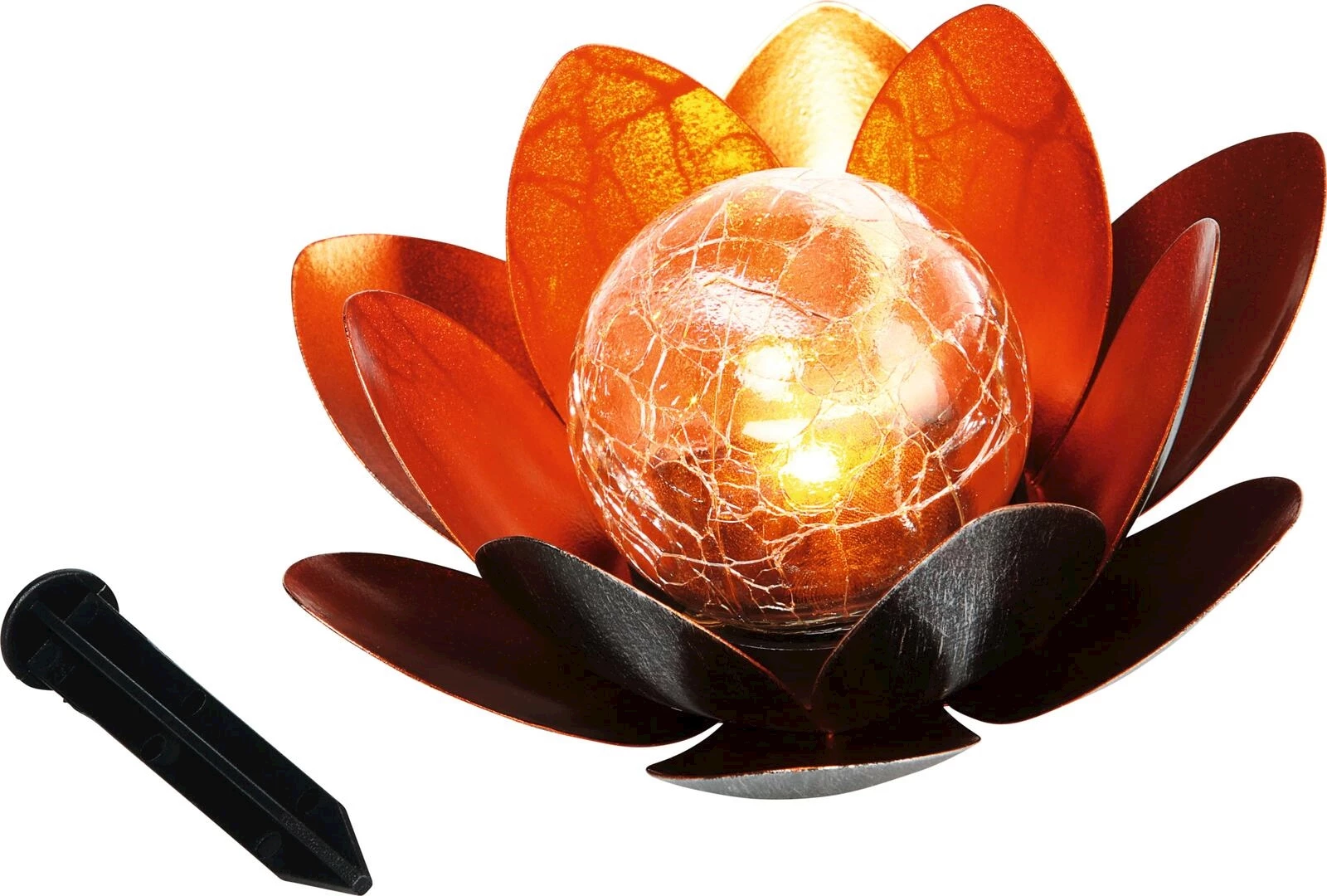 Diese schöne Solarleuchte in Lotusform sorgt mit ihrem warmen, gemütlichen Licht für eine angenehme Atmosphäre und ist perfekt für den Garten, die Terrasse oder den Balkon. Dank des praktischen Erdstocks lässt sich die Leuchte einfach im Boden oder in einem Topf befestigen, sodass sie stabil und sicher an ihrem Platz bleibt. Der Lotus besteht aus Metall und Glas.