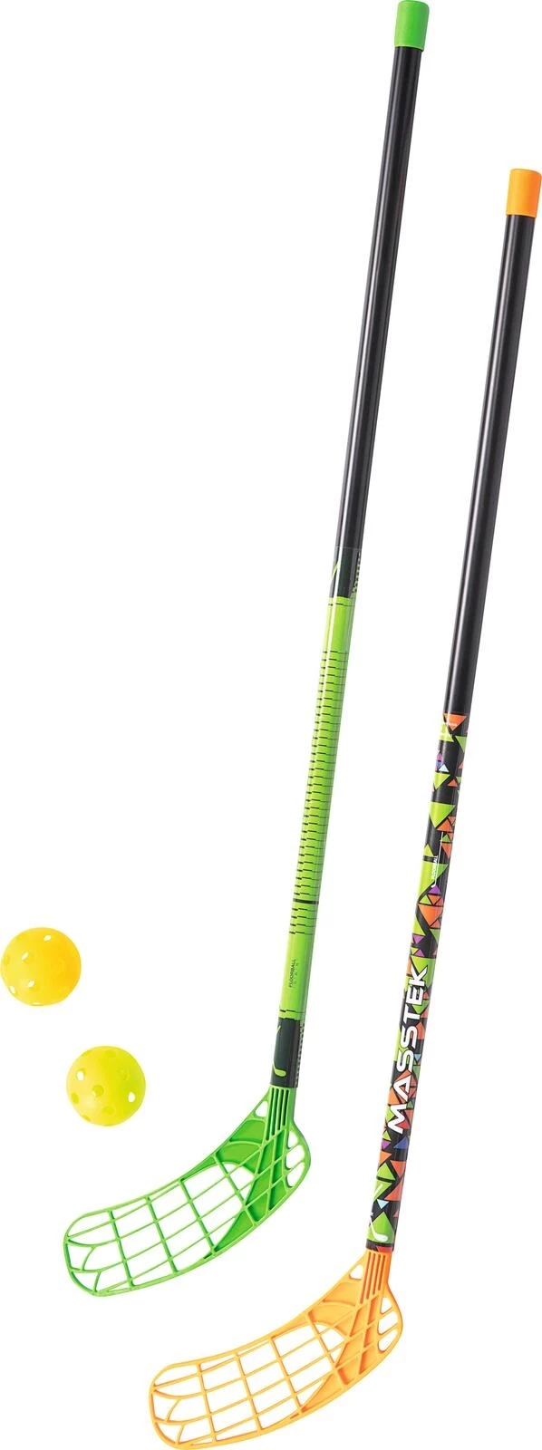 Das Unihockey-Set enthält zwei 85 cm-Schläger (Ø 25 mm) in den Farben Grün und Orange sowie zwei Bälle (Ø 7,2 cm). Das Set eignet sich hervorragend für spielerisches Training und erste spannende Matches. Das Unihockey-Set ist für Kinder ab 3 Jahren geeignet und bietet den perfekten Einstieg in die Welt des Unihockeysports.