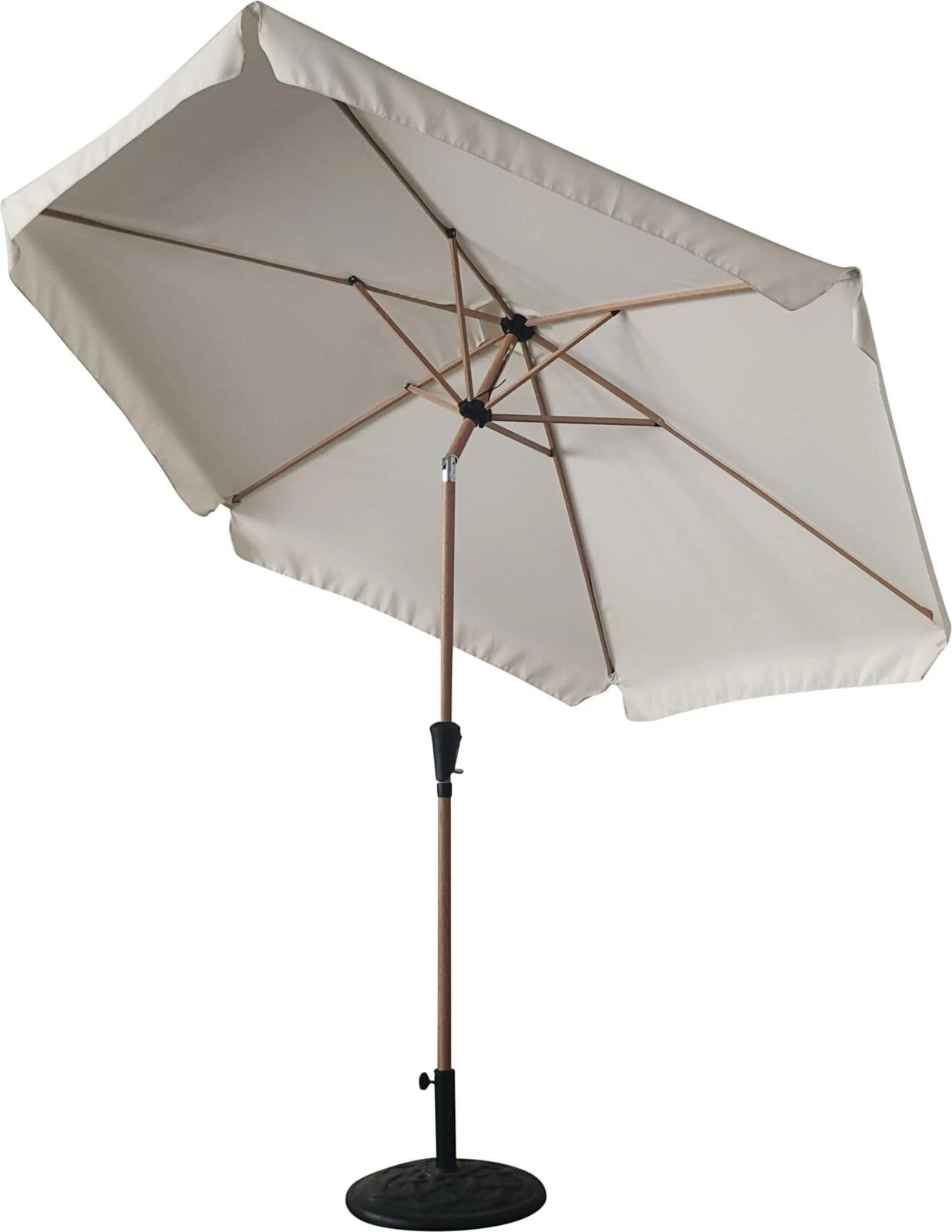 Dieser hochwertige Marktschirm bietet im Garten, auf der Terrasse oder auf dem Markt einen optimalen Schattenplatz. Der Mast besteht aus stabilem Metall. Mittels der Kurbel wird der Schirm geöffnet und mit dem Knickmechanismus kann der Winkel verstellt werden. Zudem besteht der Bezug aus 180 g Polyester, wo abnehmbar und mit einer wasser- und schmutzabweisenden Beschichtung ausgestattet sind. Die Gesamthöhe beträgt 262 cm und die Durchgangshöhe liegt bei 206 cm. Hier liegt UV-Schutz bei 50+. Für diesen Sonnenschutz wird ein Sockel mit einem Gewicht von 50 kg empfohlen.