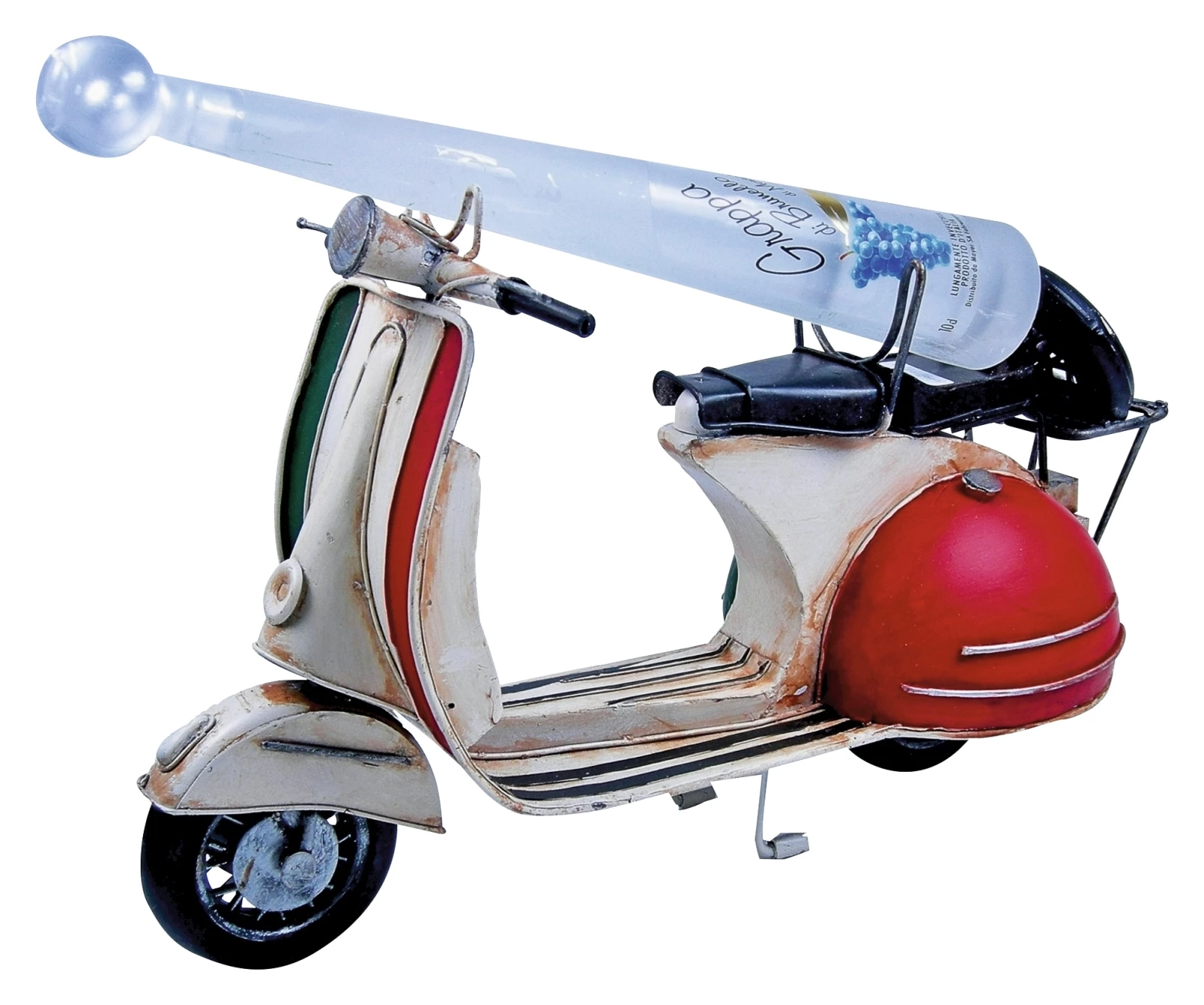 La dolce Vita und italienische Lebensfreude verkörpert dieses originelle Vespa Modell in den Farben der italienischen Flagge. Geschmückt wird dieses, wie könnte es anders sein, mit einer 10 cl Flasche feinstem Grappa die Barolo.