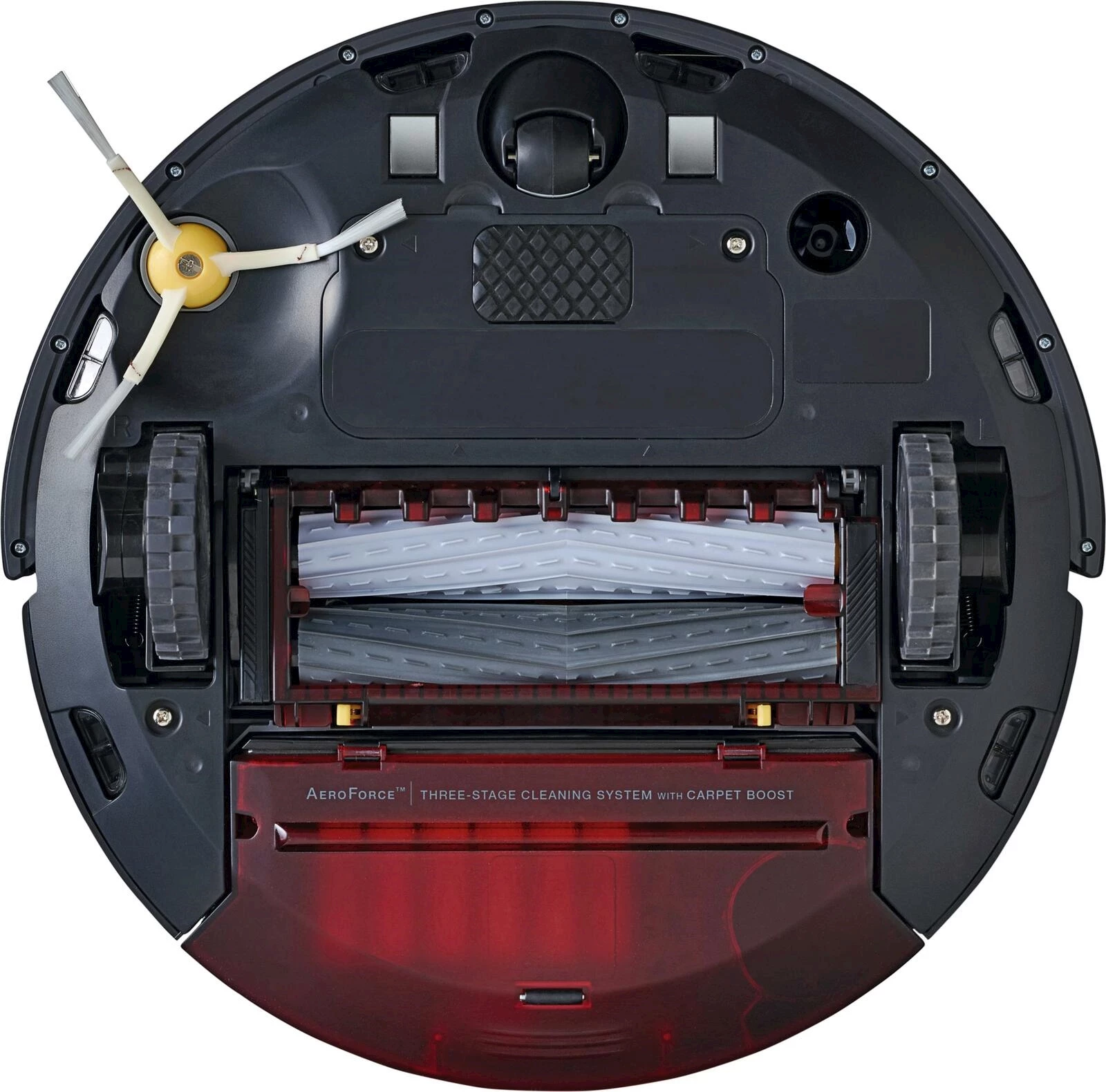 Die Dirt Detect™-Sensoren machen den Roboter auf verschmutztere Bereiche aufmerksam, etwa Orte mit hoher Besuchsfrequenz, und sorgen dafür, dass diese häufiger gereinigt werden. Jede Bürste des Roboterstaubsaugers ist mit Gummiprofilen ausgestattet, die in ständigem Kontakt mit verschiedenen Bodenoberflächen stehen – von harten Böden bis hin zu Teppichen – und sich anpassen und biegen, um alles von kleinen Partikeln wie Staub und Schmutz bis hin zu Haaren und grossen Verschmutzungen zu entfernen.