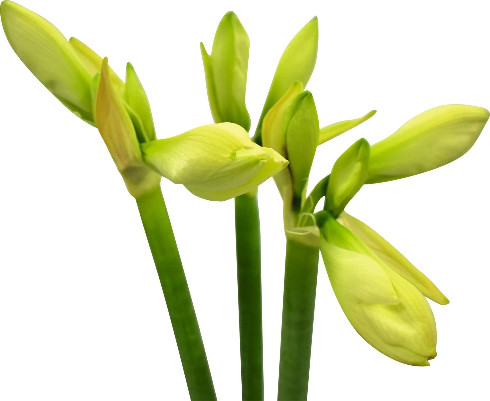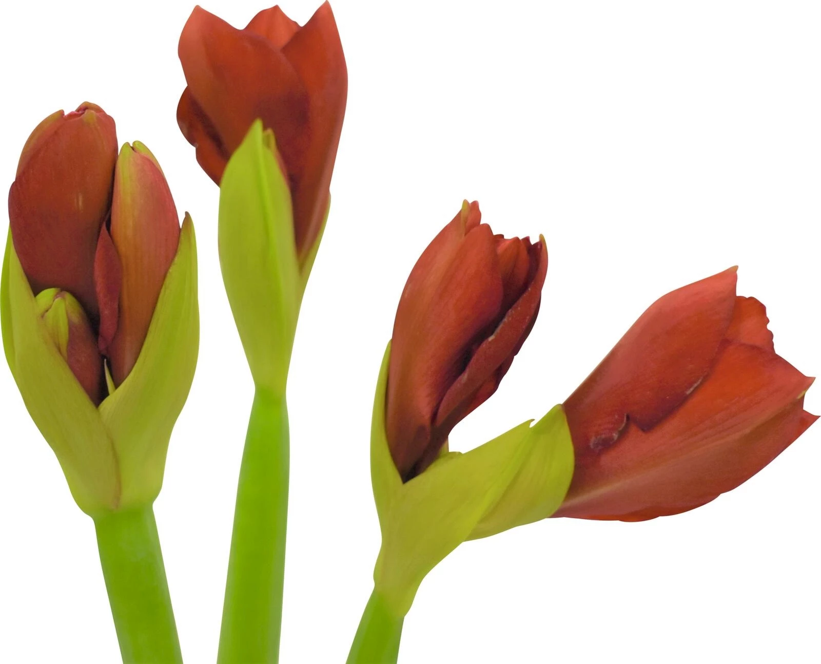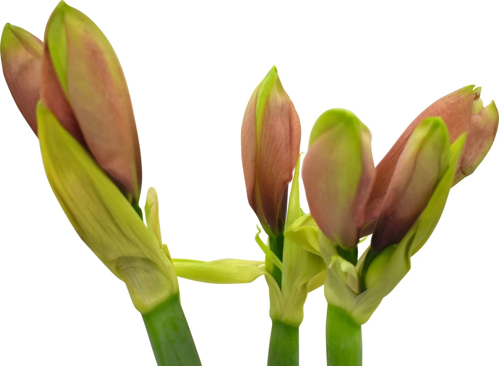 3er-Bund von geschnittenen Amaryllis ist eine wunderschöne und beliebte Wahl für Blumensträusse und Dekorationen. Ohne Vase.